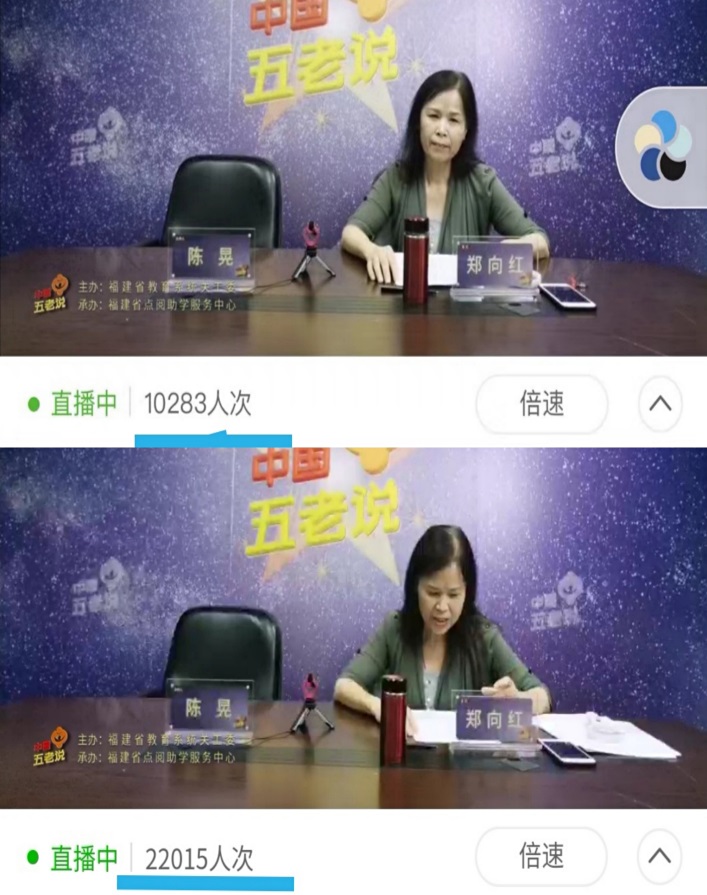 5月14日,應(yīng)福建省教育系統(tǒng)關(guān)工委邀請(qǐng),我院關(guān)工委鄭向紅老師,參加網(wǎng)絡(luò)公益直播講座《中國(guó)五老說(shuō)》,圍繞“福衛(wèi)天使,新時(shí)代最美的人”這個(gè)主題,講述英雄校友的戰(zhàn)役故事,協(xié)助省教育系統(tǒng)關(guān)工委指導(dǎo)青年學(xué)生思想道德建設(shè)和愛(ài)國(guó)主義教育。直播講座由省教育系統(tǒng)關(guān)工委陳晃副主任主持,我院關(guān)工委嚴(yán)肅主任全程參與直播講座。全省多所中、小學(xué)青少年和我院師生在線觀看了直播,觀看人數(shù)達(dá)2萬(wàn)余人。