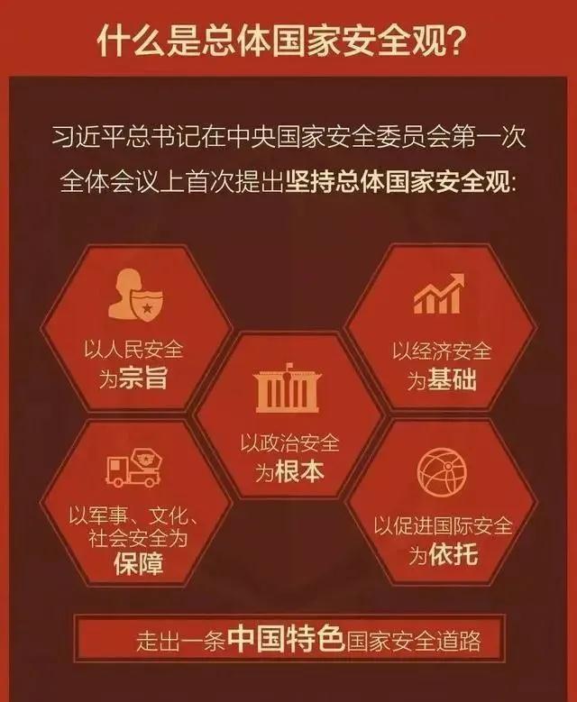2014年4月15日,習(xí)近平總書記主持召開中央國(guó)家安全委員會(huì)第一次會(huì)議并發(fā)表重要講話,指出我們要準(zhǔn)確把握國(guó)家安全形勢(shì)變化新特點(diǎn)新趨勢(shì),堅(jiān)持總體國(guó)家安全觀,走出一條中國(guó)特色國(guó)家安全道路。