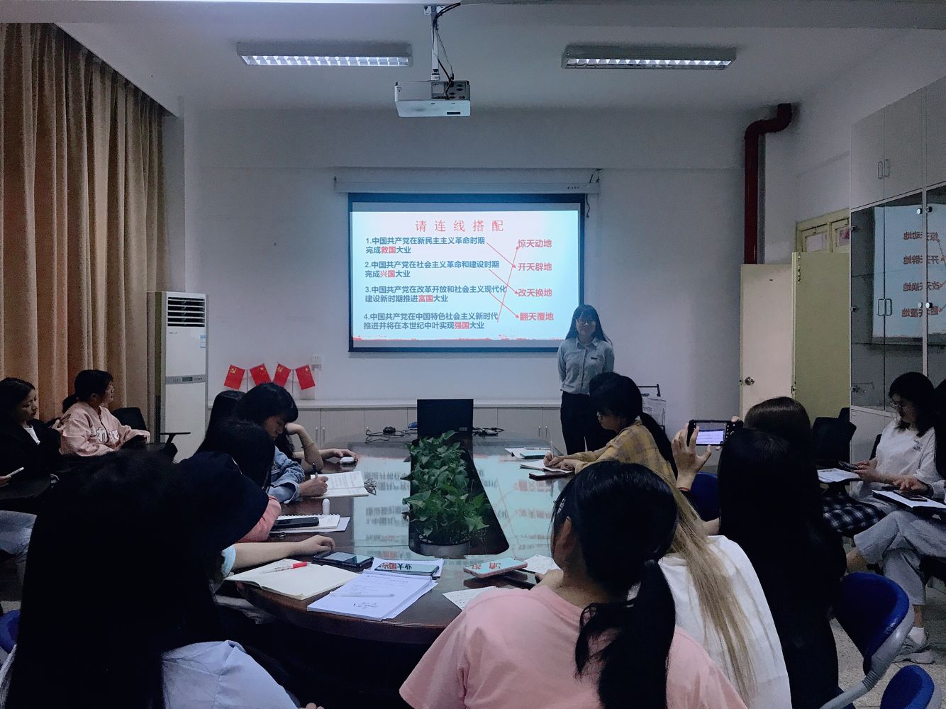 習(xí)近平新時(shí)代中國(guó)特色社會(huì)主義思想讀書(shū)社原夢(mèng)隊(duì)同學(xué)于2021年4月25日齊聚馬院社團(tuán)研討室,由熊美蘭老師作題為“百年光輝路奮進(jìn)正青春”的專題宣講。熊美蘭老師利用理論和數(shù)據(jù)從黨史發(fā)展脈絡(luò)及學(xué)習(xí)意義、新民主主義革命時(shí)期、社會(huì)主義革命和建設(shè)時(shí)期、改革開(kāi)放和社會(huì)主義現(xiàn)代化建設(shè)新時(shí)期、中國(guó)特色社會(huì)主義進(jìn)入新時(shí)代等五個(gè)方面娓娓道來(lái),與同學(xué)們一起回顧黨的歷史發(fā)展。