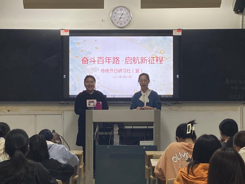 傳統(tǒng)節(jié)日研習(xí)社指導(dǎo)老師顏冰鳳、林美辰于4月20日晚上在教103召開(kāi)了“百年黨史 精神永存”理論宣講會(huì)。此次理論宣講以時(shí)間軸脈絡(luò)為主線為同學(xué)們梳理和講解黨的百年歷史,從“建黨偉業(yè):初心使命的時(shí)代呼喚”到“革命抗戰(zhàn):初心使命的中流砥柱”再到“建國(guó)執(zhí)政:初心使命的發(fā)展奇跡”,每個(gè)部分都以翔實(shí)的數(shù)據(jù)案例展現(xiàn)并娓娓道來(lái)。