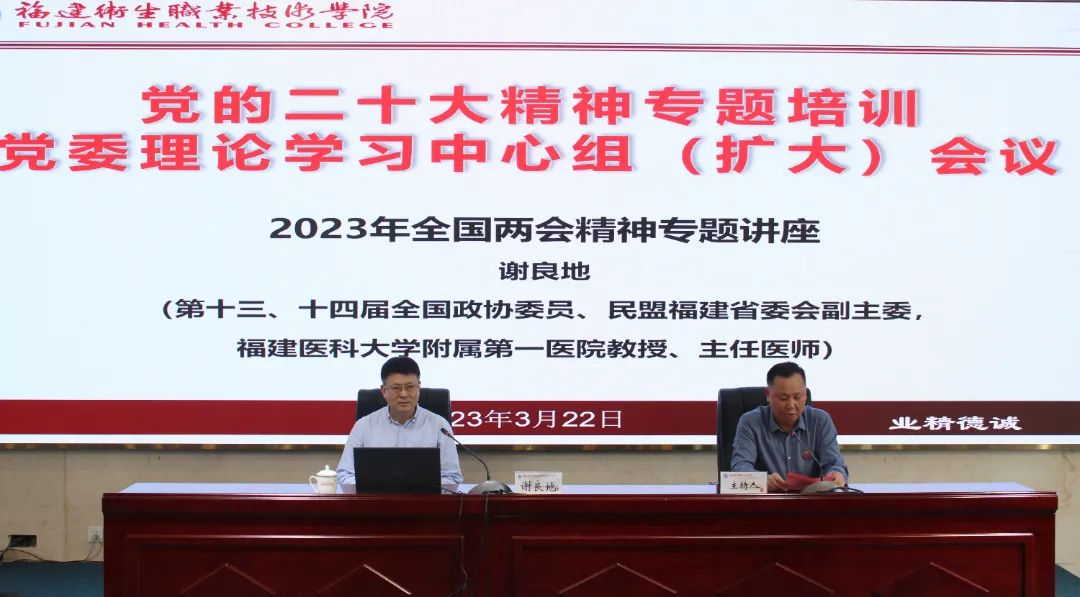 為深入學(xué)習(xí)宣傳貫徹黨的二十大精神,落實(shí)省委關(guān)于實(shí)施“深學(xué)爭優(yōu)、敢為爭先、實(shí)干爭效”行動部署,3月22日下午,黨委書記曾武祈主持召開黨委理論學(xué)習(xí)中心組(擴(kuò)大)會議暨黨的二十大精神專題培訓(xùn)。會議特別邀請全國政協(xié)委員謝良地來校作2023年全國兩會精神專題輔導(dǎo)報告。校領(lǐng)導(dǎo)、中層干部、專職組織員和師生黨支部書記共90余人參加本次會議。