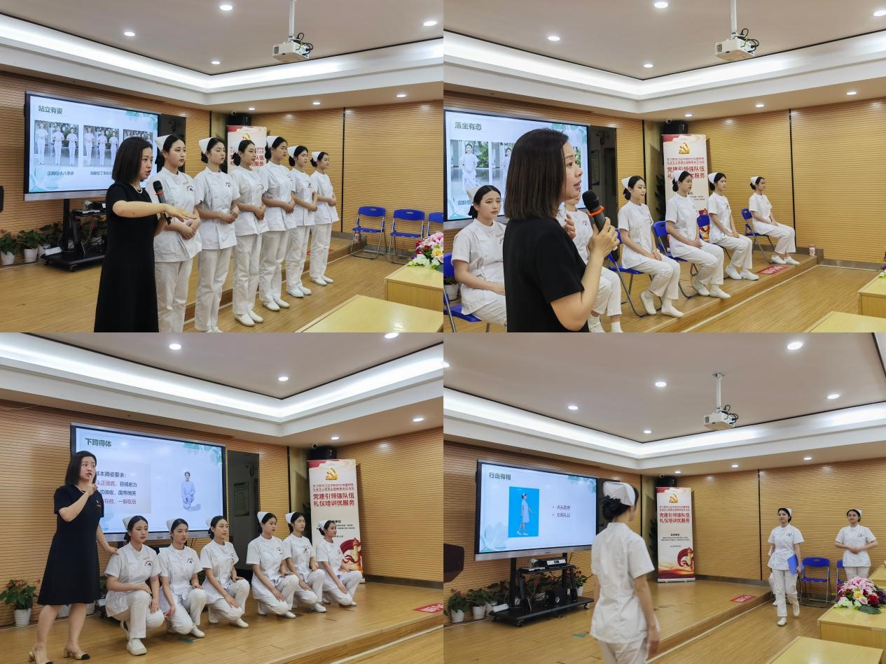為貫徹落實黨的二十大精神,深入開展學習貫徹習近平新時代中國特色社會主義思想主題教育,增強黨支部的執(zhí)行力和凝聚力,提升黨建工作的生命力和創(chuàng)造力,持續(xù)推進支部建設(shè)與專業(yè)發(fā)展深度融合。2023年5月19日,護理學院第一黨支部開展“黨建引領(lǐng)強隊伍 禮儀培訓優(yōu)服務”主題教育黨日活動。護理學院第一黨支部黨員教師劉菲菲發(fā)揮專業(yè)特長,為福建中醫(yī)藥大學附屬第二人民醫(yī)院全體護士開展護理禮儀與溝通培訓。