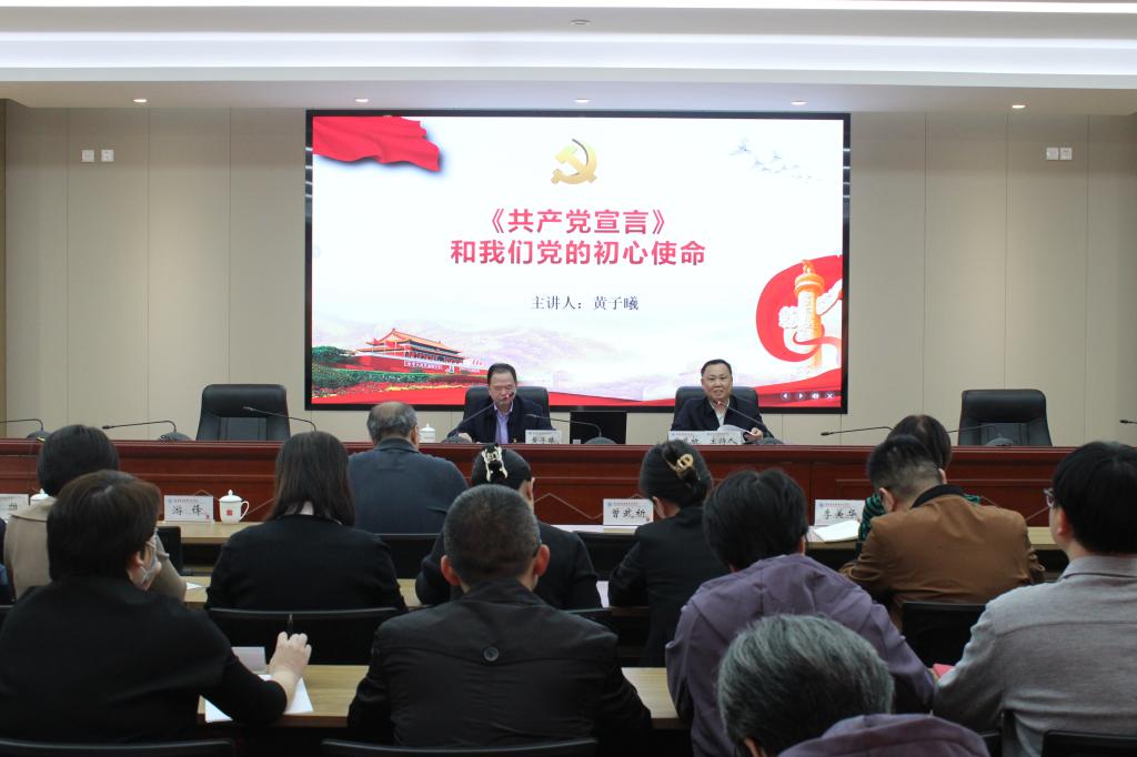 黃子曦從《共產(chǎn)黨宣言》誕生的歷史背景及歷史意義、《共產(chǎn)黨宣言》的重大理論貢獻(xiàn)、《共產(chǎn)黨宣言》與我們黨的初心使命等三個(gè)方面闡述了《共產(chǎn)黨宣言》這第一部較為完整系統(tǒng)科學(xué)地闡述社會(huì)主義基本理論的偉大著作。本次專題講座內(nèi)涵豐富、邏輯清晰、重點(diǎn)突出、剖析深刻。
