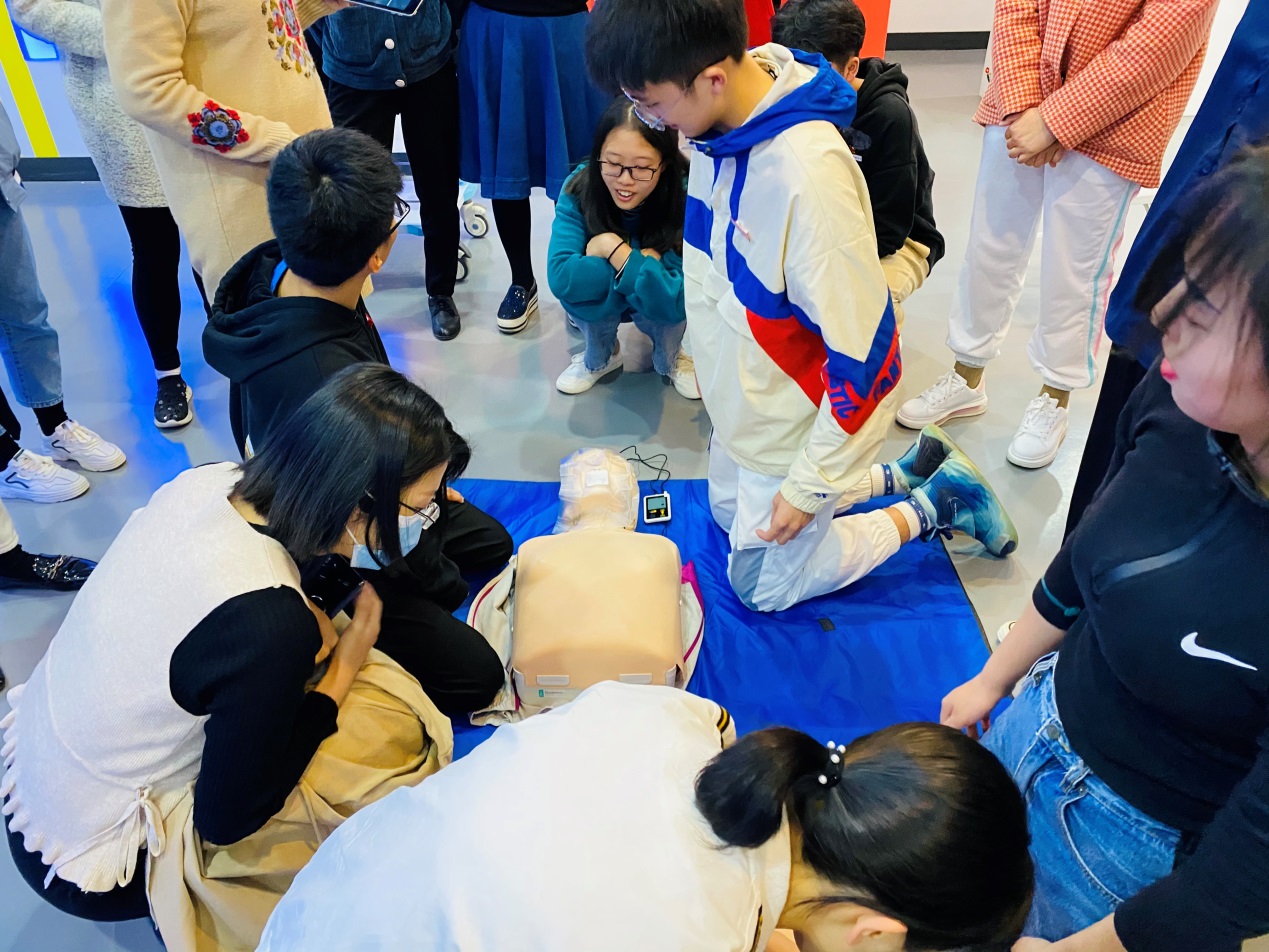 近年來,關于猝死的新聞開始逐漸增多,現(xiàn)場第一目擊者在“黃金4分鐘”內(nèi)對猝死患者實施有效心臟復蘇的作用日益得到重視,急救意識和技能的普及任重道遠。本次主題黨日活動首先對紅十字會的學生進行心肺復蘇胸外按壓的手法、姿勢、人工通氣方法等要點以及氣道異物梗阻的經(jīng)典海姆立克急救手法等急救技能培訓和現(xiàn)場演練,然后參觀紅十字生命安全體驗學堂,對生命安全和防護進行更深層次教育。通過此次主題黨日活動,不僅培訓學生的急救技能,加強“時間就是生命”的觀念和團隊合作精神,還通過生命教育,提升了師生安全防范意識和自救互救能力。參觀了紅十字生命安全體驗學堂,對生命安全防護有了更深層次的理解。