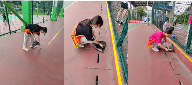 第五組負(fù)責(zé)籃球場區(qū)域垃圾。