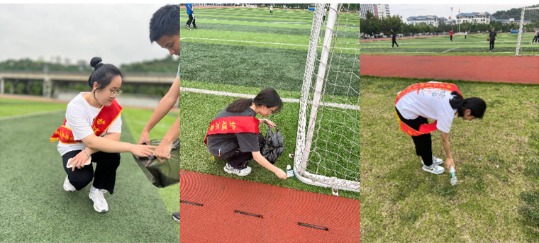 第四組負(fù)責(zé)清理操場區(qū)域垃圾。
