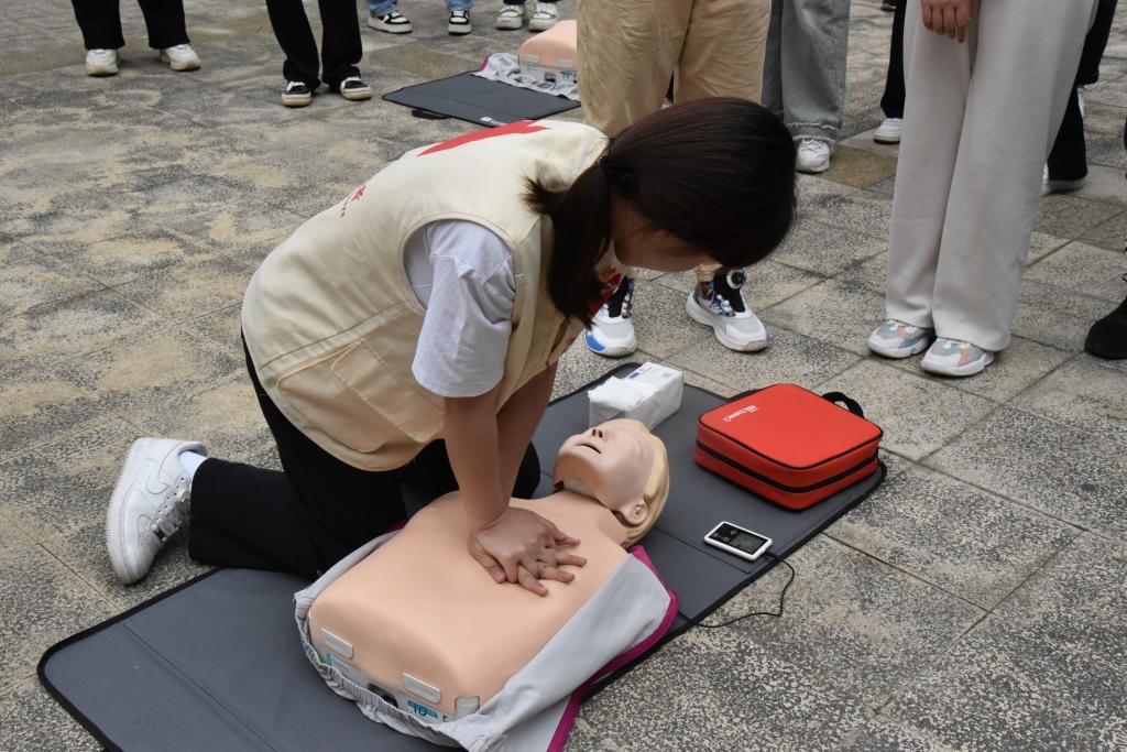 護(hù)理學(xué)院第二黨支部“雙帶頭人”洪霞老師帶領(lǐng)黨員同志以“理論+實(shí)踐”相結(jié)合的方式為在場學(xué)生及家長們開展心肺復(fù)蘇術(shù)(CPR)與自動(dòng)體外除顫器(AED)操作培訓(xùn)。培訓(xùn)中,洪霞老師用通俗易懂的語言和形象生動(dòng)的圖片向同學(xué)們介紹了心肺復(fù)蘇急救知識,以及心肺復(fù)蘇的流程與要領(lǐng)。通過利用人體模型,就心肺復(fù)蘇涉及的迅速呼救、胸外按壓、開放氣道、人工呼吸、自動(dòng)體外除顫器等操作步驟進(jìn)行分解演練,確保動(dòng)作標(biāo)準(zhǔn)、力度到位。這種手把手的教學(xué)活動(dòng)既檢驗(yàn)了理論知識,又加深了實(shí)踐記憶。