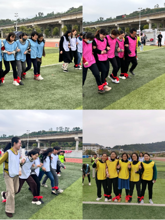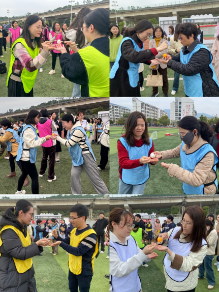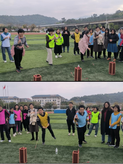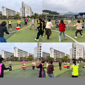 觀看完家風(fēng)教育微電影,大家移步田徑場開展趣味運(yùn)動(dòng)會(huì)。比賽項(xiàng)目有筷子夾球、五人六足、足球進(jìn)框、同心擊鼓、趣味投壺五個(gè)項(xiàng)目,秉持增進(jìn)部門間溝通交流的目的,不同部門、教研室的老師和輔導(dǎo)員們分成9支隊(duì)伍,她們個(gè)個(gè)精神飽滿、滿腔熱情地投入到趣味運(yùn)動(dòng)會(huì)中。現(xiàn)場加油聲、吶喊聲、喝彩聲此起彼伏,不論輸贏大家都歡聲笑語,充分展示蓬勃向上的巾幗風(fēng)采和拼搏向上、勇于爭先的團(tuán)隊(duì)精神。
