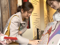 參觀結(jié)束后,大家在象征團結(jié)和諧繪制有石榴籽的畫布上按下指印,大家的指印就像一粒粒石榴籽,緊緊擁抱在一起,形成石榴籽畫,寓意著中華民族是一個不容分割的大家庭,恰如56個民族手足相親、守望相助,共同凝聚成了多元一體的中華民族。