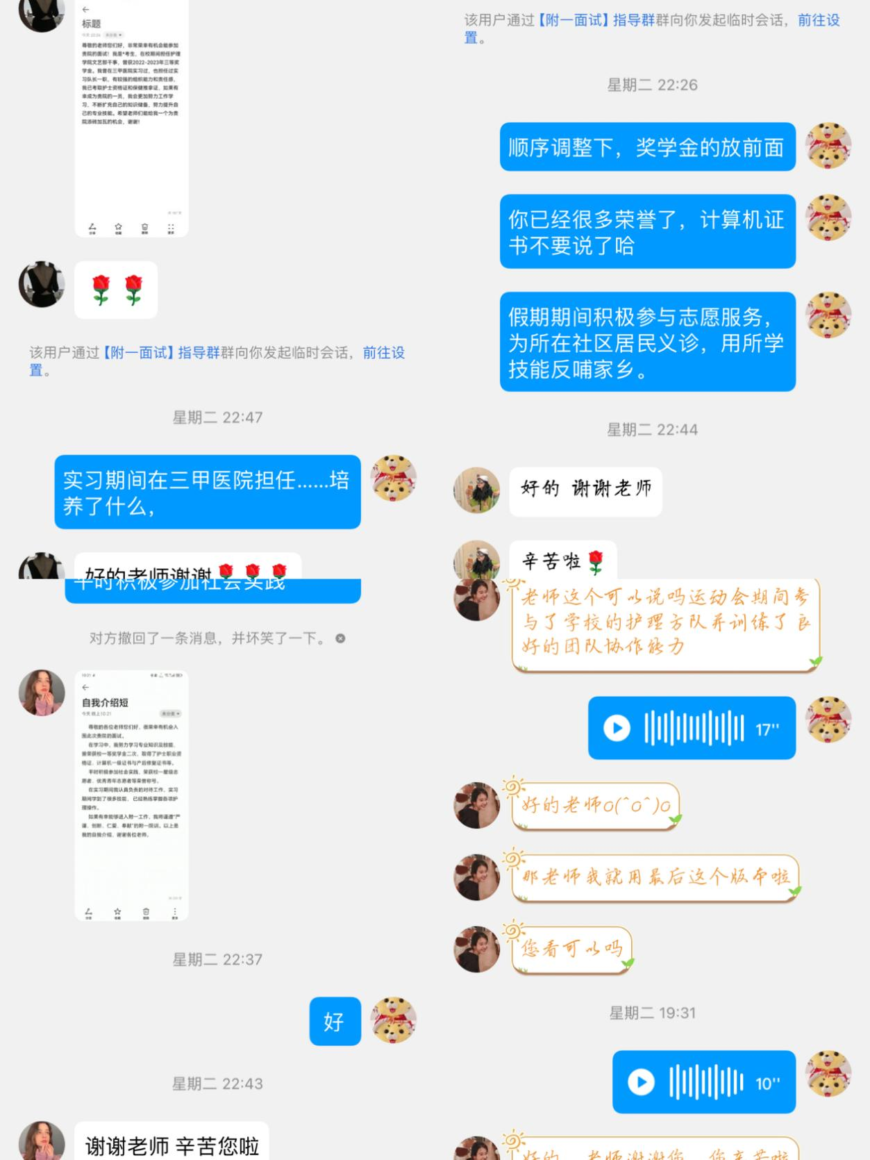 講座結(jié)束,黨員教師對進入面試的學(xué)生的自我介紹一一指導(dǎo),打通就業(yè)服務(wù)“最后一公里”。