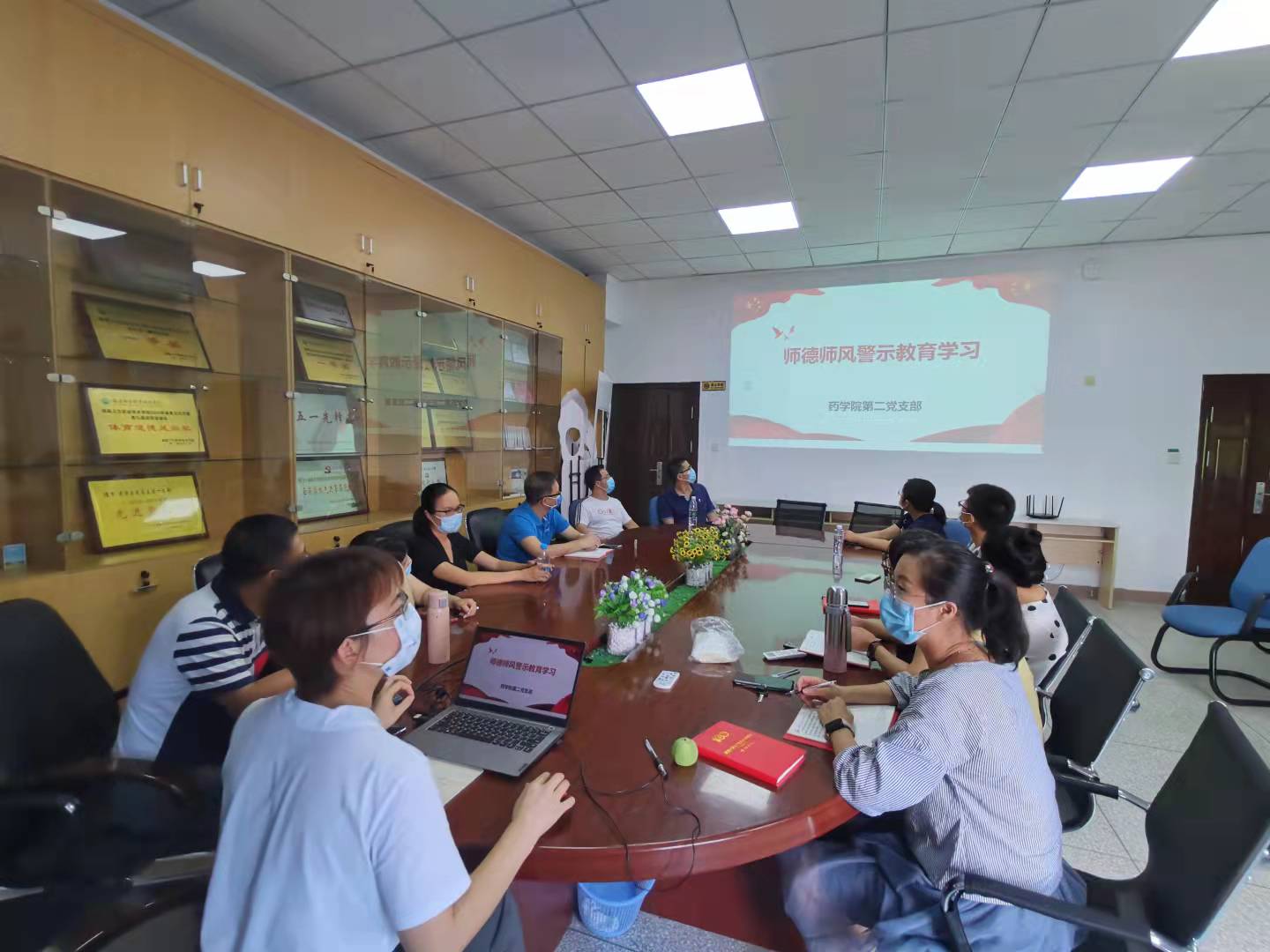 為進(jìn)一步提高支部黨員的師德水平,建設(shè)一支高素質(zhì)的黨員教師隊(duì)伍,藥學(xué)院第二黨支部于2021年9月10日開展師德師風(fēng)警示教育專題學(xué)習(xí)。本次專題學(xué)習(xí)由支部書記劉丹丹主持。
