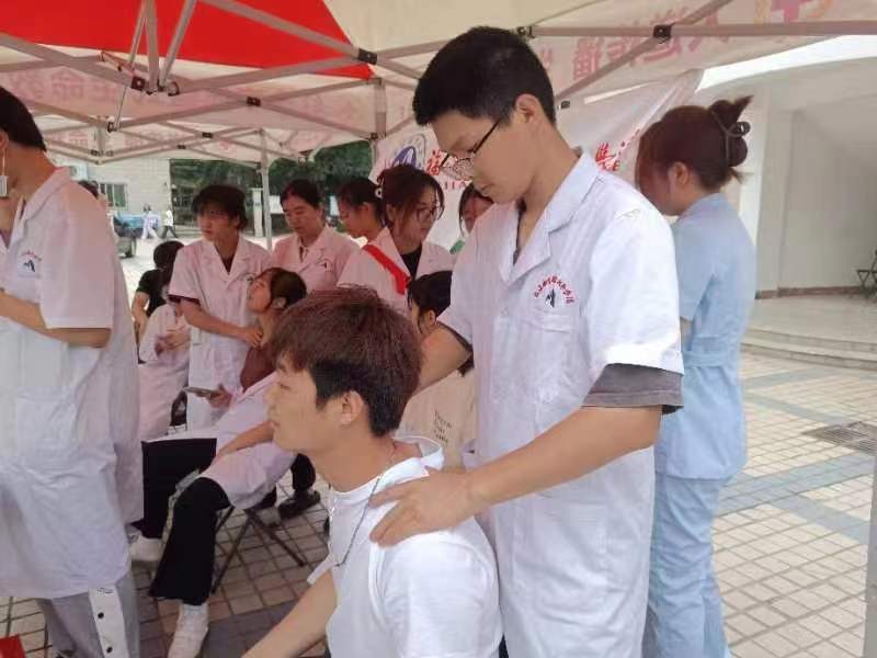 賽后,黨員教師聯(lián)合康健俱樂(lè)部成員為運(yùn)動(dòng)員開(kāi)展康復(fù)治療。