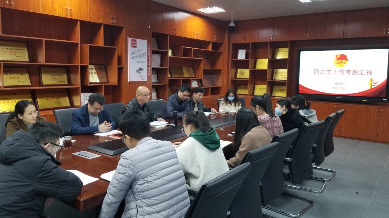 為進一步加強黨總支對團學(xué)工作的指導(dǎo),扎實推進黨建帶團建,提升團總支工作能力,2月10日上午醫(yī)學(xué)院在實訓(xùn)樓311召開團總支工作專題匯報會,全體黨總支委員,各黨支部書記、副書記,團總支書記參加會議。