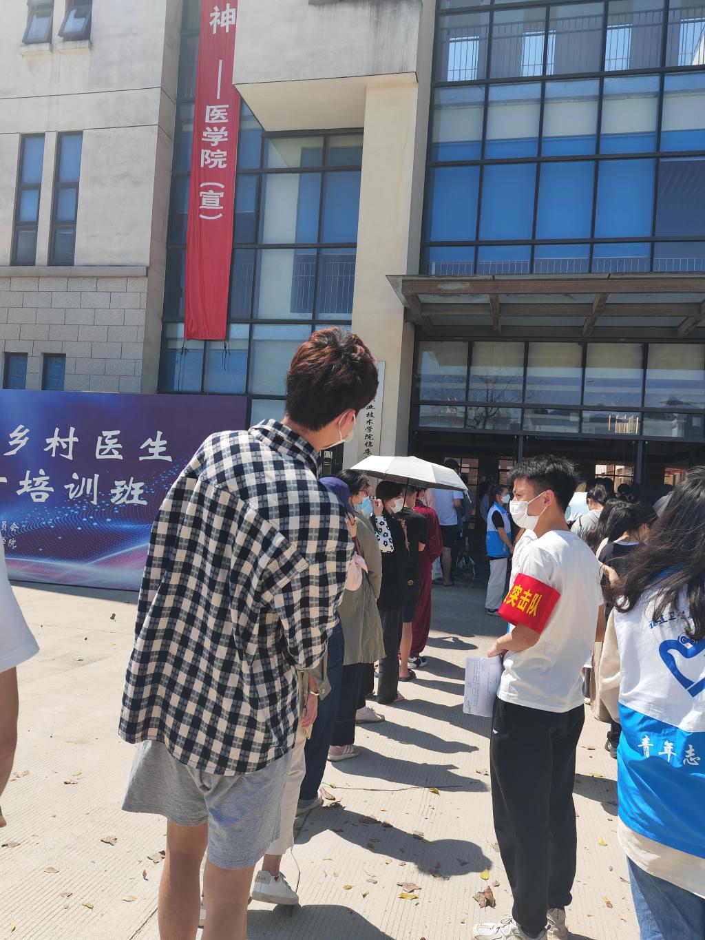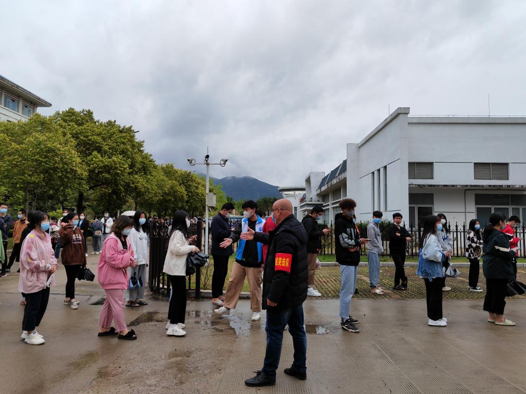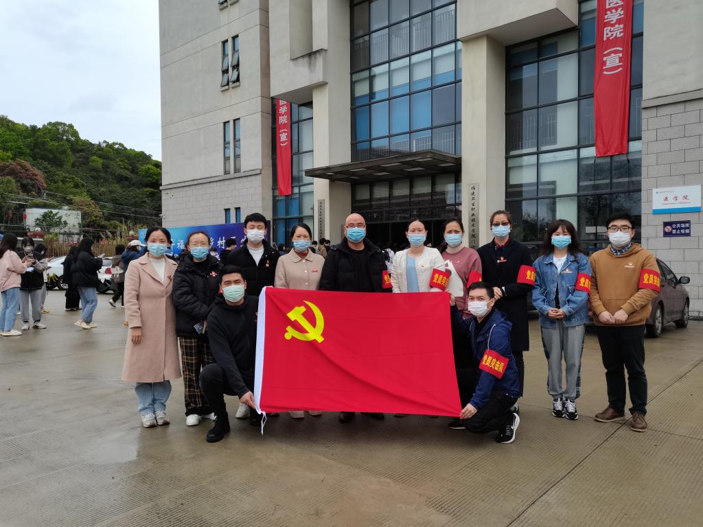 理論學(xué)習(xí)必須在實踐中得以印證。此輪疫情來勢洶洶,防控形勢十分嚴峻。支部黨員志愿助力核酸檢測,彰顯責(zé)任擔(dān)當(dāng),中午時分,大家到門診部大廳便忙碌起來,他們有的引導(dǎo)同學(xué)們有序排隊,保持安全距離;有的協(xié)助排隊人員完成掃碼預(yù)約及采樣碼核驗工作,確保應(yīng)檢人員全部完成。