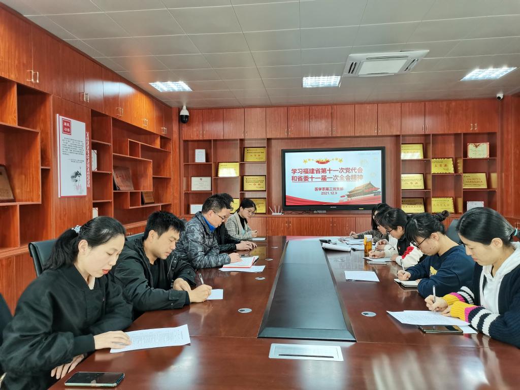 2021年12月9日中午,醫(yī)學系第三黨支部在實訓樓311開展“福建省第十一次黨代會和省委十一屆一次全會精神”專題學習活動。本次活動由支部書記陳銘主持。