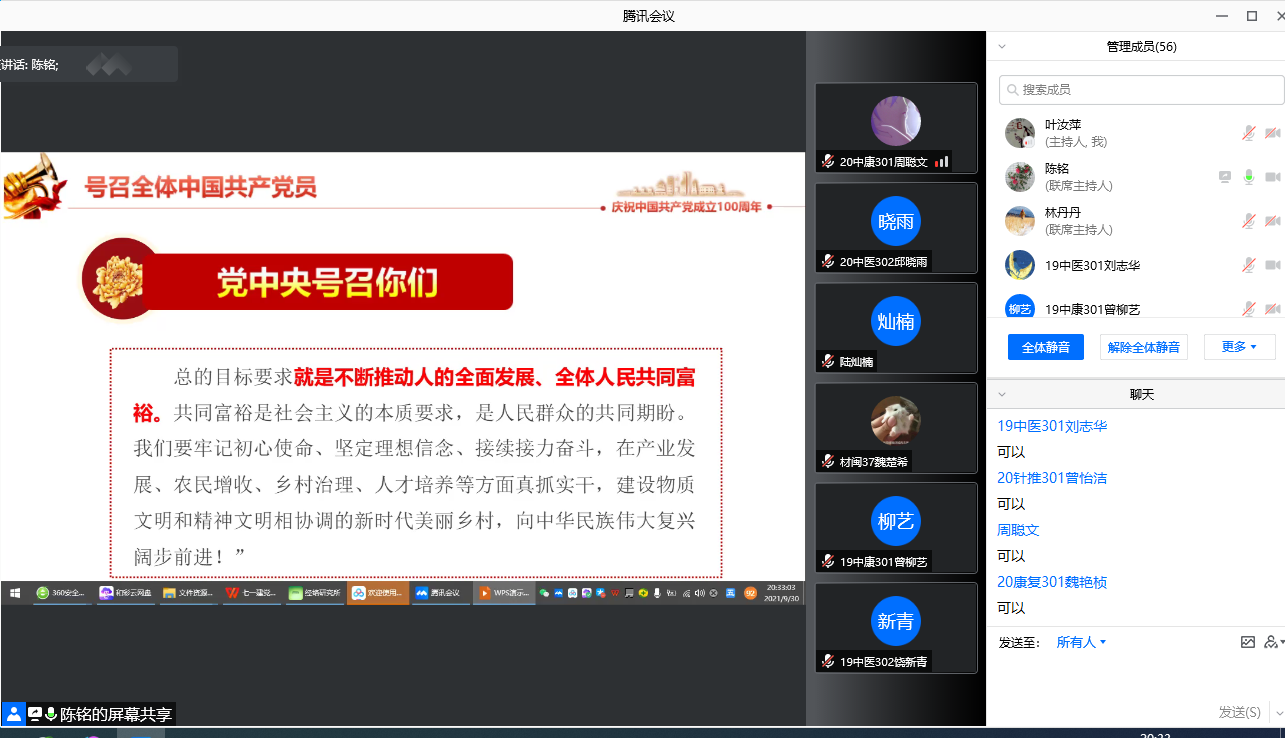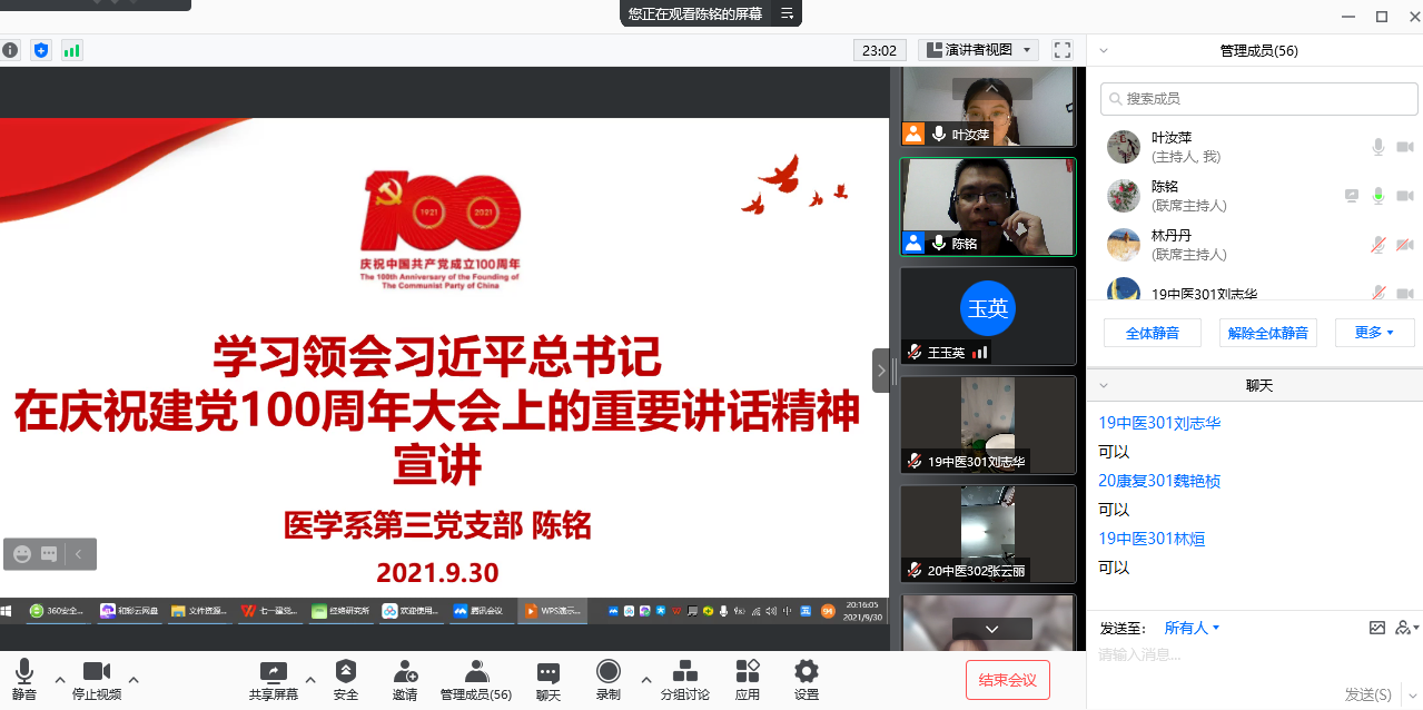 2021年9月30日晚,醫(yī)學(xué)系第三黨支部書(shū)記陳銘利用騰訊會(huì)議為支部師生開(kāi)展學(xué)習(xí) “七一”重要講話(huà)精神宣講。
