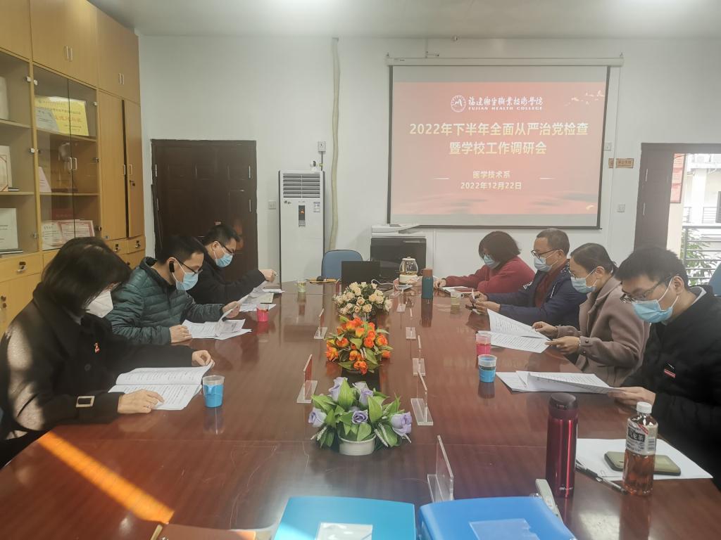2022年12月22日,黨委書(shū)記曾武祈帶隊(duì)來(lái)到醫(yī)學(xué)技術(shù)系黨總支開(kāi)展2022下半年全面從嚴(yán)治黨主體責(zé)任落實(shí)情況檢查。