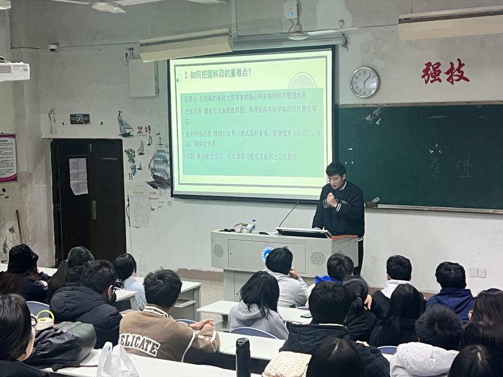 2023年12月17日,為了幫助22級和23級醫(yī)學(xué)影像技術(shù)高本貫通班的同學(xué)們更好地適應(yīng)大學(xué)生活,提高學(xué)習(xí)成績,醫(yī)學(xué)技術(shù)與工程學(xué)院學(xué)生第二黨支部舉辦了一場學(xué)習(xí)交流分享會。本次分享會邀請了多位優(yōu)秀的21級影像高本貫通班學(xué)姐學(xué)長,為學(xué)弟學(xué)妹們傳授了寶貴的學(xué)習(xí)經(jīng)驗(yàn)和方法?,F(xiàn)場氣氛熱烈,互動頻繁。院黨總支書記柯瓊鶯、班主任俞裕艷老師和輔導(dǎo)員鄭語琪、吳沁老師參加分享會。