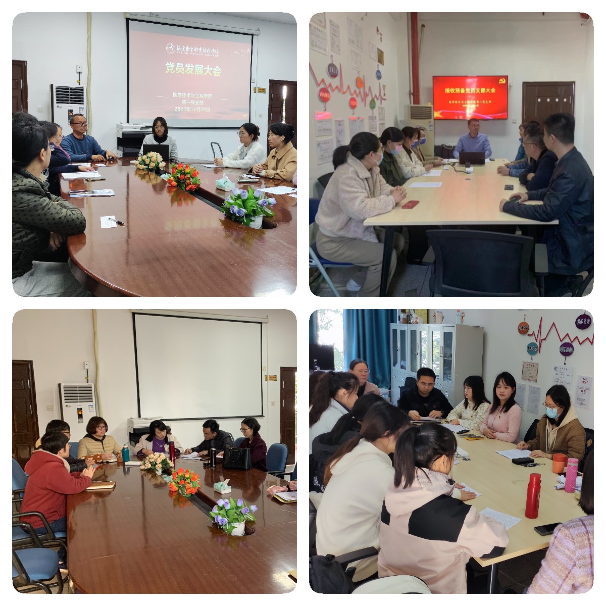 12月28日,醫(yī)學(xué)技術(shù)與工程學(xué)院第一黨支部、第二黨支部、學(xué)生第一黨支部、學(xué)生第二黨支部分別召開接收預(yù)備黨員支部大會(huì),共接收吳沁等10名師生為預(yù)備黨員。