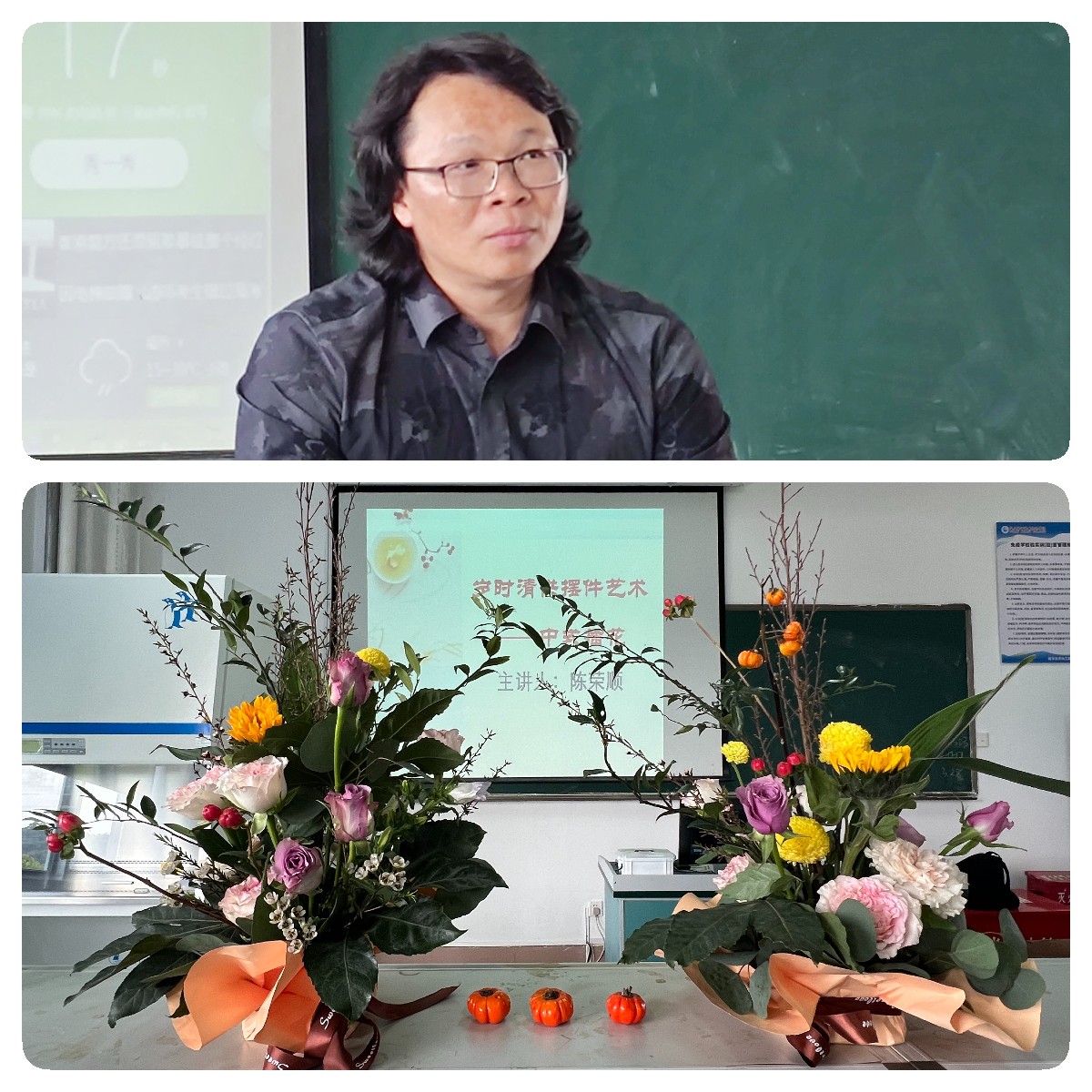 3月28日,醫(yī)學(xué)技術(shù)與工程學(xué)院黨總支聯(lián)合農(nóng)工黨支部開展紀(jì)念“三八”國際婦女節(jié)114周年主題活動?;顒友埵澜缛A人插花花藝協(xié)會首任分會長(福建)、園林綠化高級工程師陳榮順作《歲時清供擺件藝術(shù)——中式插花》的專題講座,并開展中式插花的現(xiàn)場教學(xué)和實(shí)踐。醫(yī)學(xué)技術(shù)與工程學(xué)院女工小組和農(nóng)工黨支部黨員參加活動。