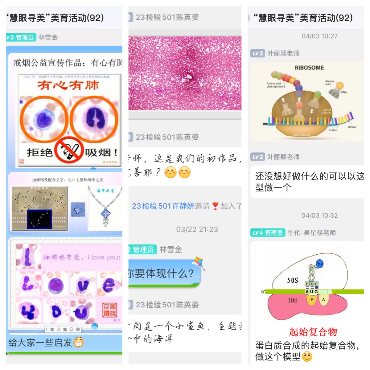 近日,醫(yī)工學(xué)院教師第一黨支部與學(xué)生第一黨支部聯(lián)合組織開展“慧眼尋美”醫(yī)學(xué)檢驗(yàn)技術(shù)專業(yè)美育作品展評(píng)賽。本次競(jìng)賽旨在夯實(shí)學(xué)生醫(yī)學(xué)檢驗(yàn)技術(shù)專業(yè)知識(shí),激發(fā)學(xué)習(xí)興趣,培養(yǎng)創(chuàng)新思維,展示醫(yī)學(xué)檢驗(yàn)技術(shù)專業(yè)特色美育成果,探索寓美于教的人才培養(yǎng)創(chuàng)新實(shí)踐。