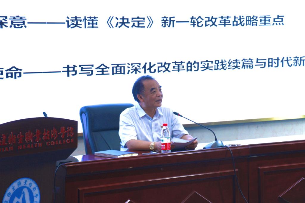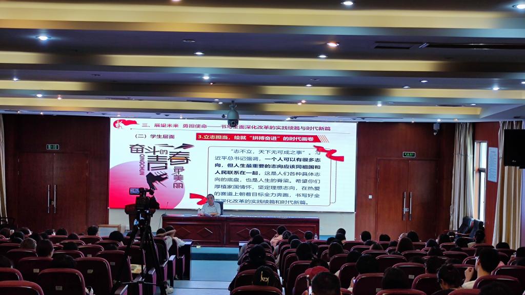 9月12日,學(xué)校紀(jì)委書(shū)記游鋒以《同心擘畫(huà)改革新藍(lán)圖  攜手奮進(jìn)強(qiáng)國(guó)新征程》為題,宣講黨的二十屆三中全會(huì)精神,本次宣講作為2024年秋季學(xué)期開(kāi)學(xué)第一課,醫(yī)學(xué)技術(shù)與工程學(xué)院24眼視光301-302班學(xué)生、黨員教師共同參與學(xué)習(xí)。