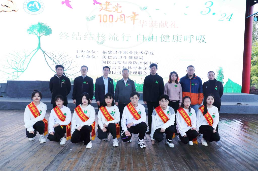 3月21日,第26個(gè)“世界防治結(jié)核病日”來(lái)臨之際,福建衛(wèi)職院聯(lián)合福建省疾控中心、閩侯縣衛(wèi)生局、閩侯縣文旅局、閩侯縣疾控中心、閩都民俗園管理服務(wù)中心等單位在閩都民俗園舉辦以“終結(jié)結(jié)核流行 自由健康呼吸”為主題的結(jié)核病防治健康宣教黨日活動(dòng),以實(shí)際行動(dòng)獻(xiàn)禮建黨100周年華誕。健康管理系師生黨員、學(xué)生志愿者和各協(xié)辦單位領(lǐng)導(dǎo)來(lái)賓參加活動(dòng)?;顒?dòng)由健康管理系黨總支第一支部承辦,副校長(zhǎng)陳貞健以普通黨員身份參加活動(dòng)。