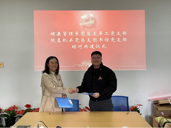 健康管理系黨總支第二支部書記張凱捷、院直機(jī)關(guān)黨總支圖書館黨支部書記宋愛艷分別代表雙方簽訂了黨建共建協(xié)議,約定將在組織建設(shè)、黨員交流、人才培養(yǎng)、互助合作等環(huán)節(jié)開展共建活動(dòng)。