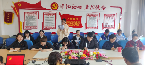 最后,健康管理系黨總支第一支部書(shū)記吳明同志做了大會(huì)總結(jié)發(fā)言,她在肯定發(fā)展對(duì)象優(yōu)點(diǎn)的同時(shí),也希望大家能夠時(shí)刻記住自己的黨員身份,牢記這個(gè)重要時(shí)刻,牢記自己的使命,樹(shù)立榜樣,向優(yōu)秀黨員同志學(xué)習(xí),起到模范帶頭作用,牢記初心,堅(jiān)定決心,爭(zhēng)取按期轉(zhuǎn)正。