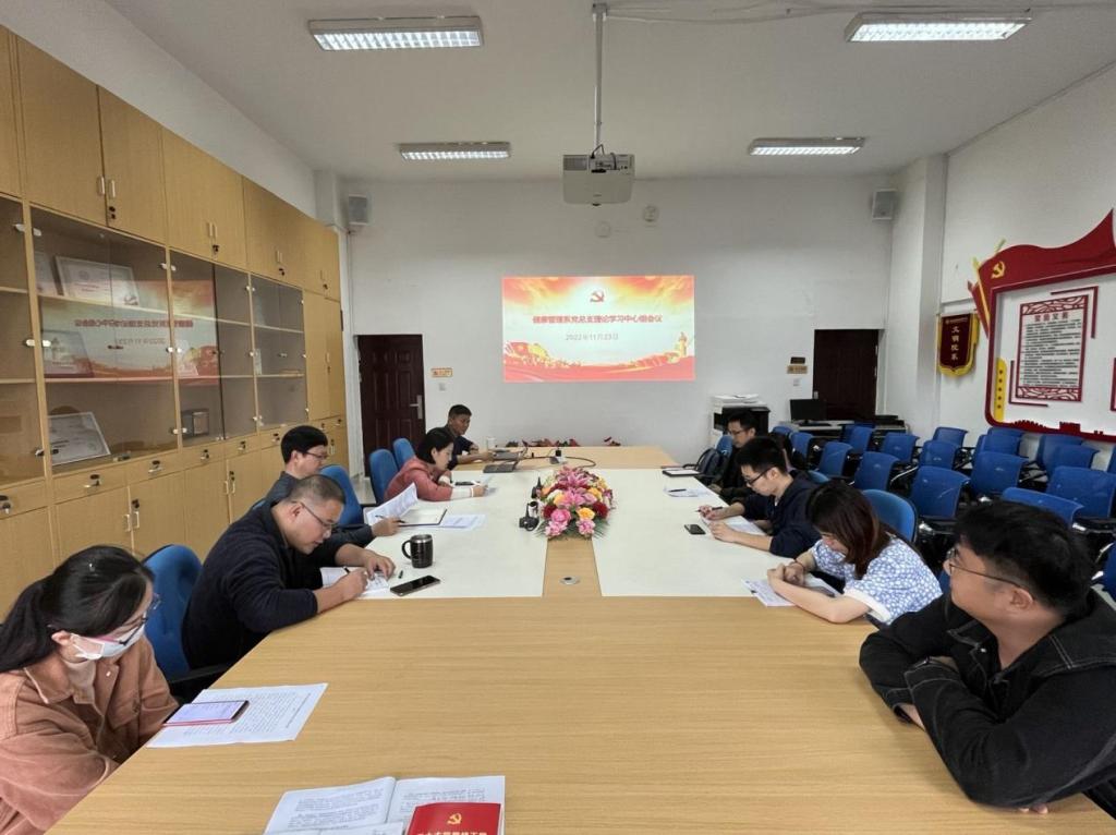 11月29日,健康管理系黨總支2022年第11次理論學(xué)習(xí)中心組會議在系部會議室召開,傳達(dá)學(xué)習(xí)習(xí)近平在中國共產(chǎn)黨第二十次全國代表大會上的報告、中共中央政治局常務(wù)委員會召開會議聽取新冠肺炎疫情防控工作匯報研究部署進(jìn)一步優(yōu)化防控工作的二十條措施 、習(xí)近平新時代中國特色社會主義思想的基本精神、基本內(nèi)容、基本要求;二十大黨章修正案、省委十一屆三次全會等內(nèi)容。