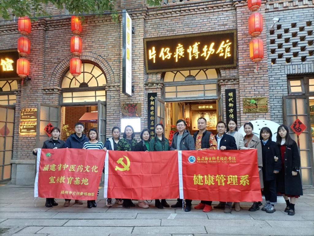 為深入學(xué)習(xí)貫徹黨的二十大精神,弘揚(yáng)中華優(yōu)秀傳統(tǒng)文化,踐行健康中國的理念。2023年2月17日,健康管理系“雙帶頭人”教師黨支部赴福州市片仔癀博物館開展“憶崢嶸歲月,奮進(jìn)新征程,科普向未來”的主題黨日活動。