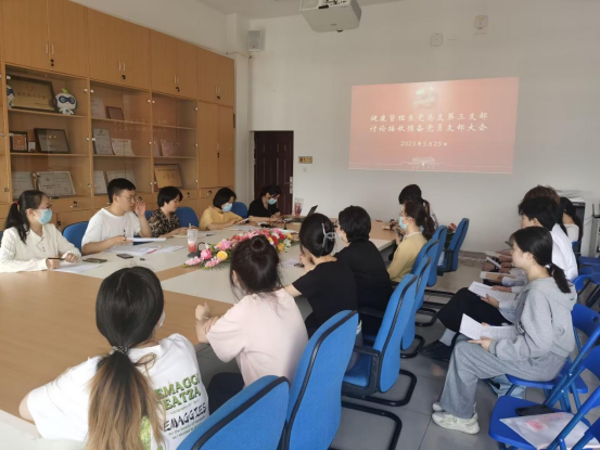 5月25日,健康管理系黨總支第三支部于圖書館五樓會(huì)議室召開接收預(yù)備黨員大會(huì),會(huì)議就曾學(xué)華等6名發(fā)展對(duì)象入黨問題展開了充分討論,黨支部書記王開曄同志主持會(huì)議。