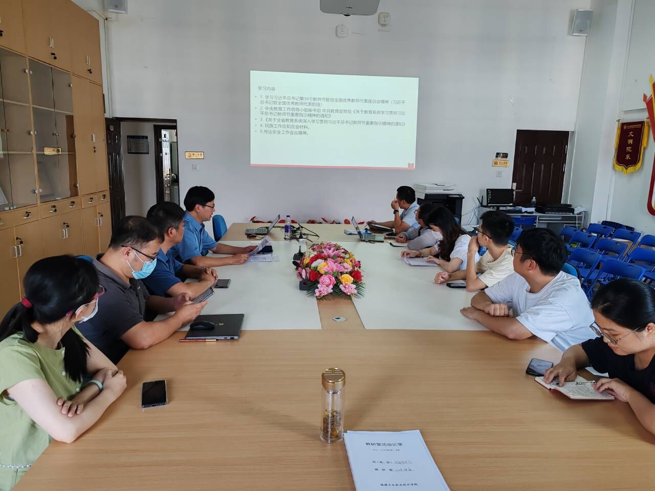 葉海結(jié)合學(xué)習(xí)內(nèi)容和系部工作實際,提出三點要求。一是全體教職工要提高政治站位,充分認識、深刻領(lǐng)會習(xí)近平總書記教師節(jié)重要指示的重大意義,要大力弘揚培育踐行教育家精神,將教育家精神融入貫徹落實黨的二十大精神。二是要抓好習(xí)近平總書記教師節(jié)重要指示精神的學(xué)習(xí)貫徹,通過廣泛宣傳、深入學(xué)習(xí)、持續(xù)落實,提高廣大教師為黨育人、為國育才的責任感與使命感。三是以建設(shè)“雙高校”為目標,著力營造“尊師重教”氛圍,要將學(xué)習(xí)貫徹習(xí)近平總書記教師節(jié)重要指示精神轉(zhuǎn)化為建設(shè)高素質(zhì)教師隊伍的具體實踐,持之以恒抓好教師思想政治和師德師風(fēng)建設(shè)。