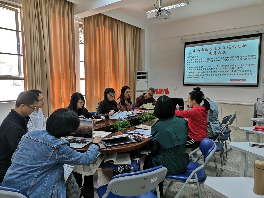 2021年3月25日上午,直屬馬克思主義學院黨支部在行政樓107召開第一季度意識形態(tài)工作會,本次會議由直屬馬克思主義學院黨支部書記熊美蘭主持,支部全體黨員參加了會議。
