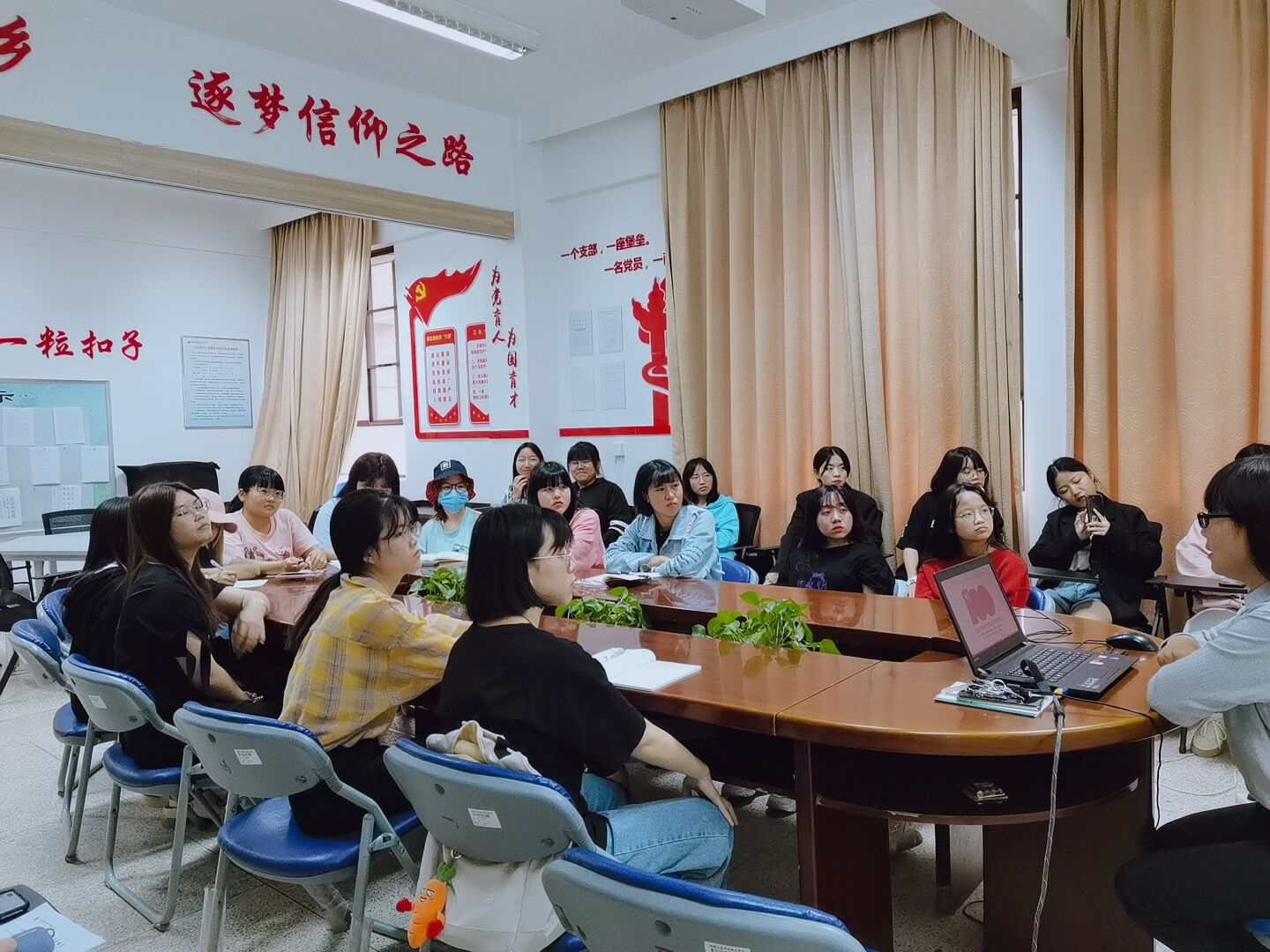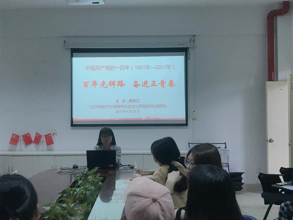 黨史學(xué)習(xí)教育基礎(chǔ)在學(xué)習(xí)、目的在教育,將黨史學(xué)習(xí)教育融于立德樹人全過程。習(xí)近平新時(shí)代中國特色社會主義思想讀書社原夢隊(duì)同學(xué)于2021年4月25日齊聚馬院社團(tuán)研討室,由熊美蘭老師作題為“百年光輝路奮進(jìn)正青春”的專題宣講,引導(dǎo)同學(xué)從百年黨史中汲取智慧和力量,爭做新時(shí)代的奮斗者。