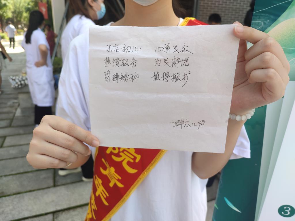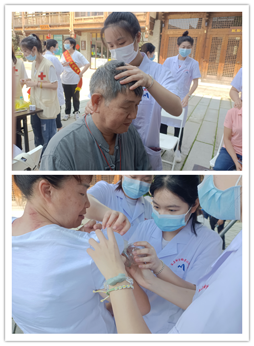 本次活動還邀請學(xué)??到【銟凡康某蓡T為居民提供按摩和撥火罐服務(wù),在藥香和煙火的氣息中,鄉(xiāng)鄰們享受著志愿隊員的“指尖巧技”,還有熱心居民寫下“不忘初心,心系民眾;熱情服務(wù),為民解憂;雷鋒精神,值得推廣”的珍貴留言,為我校義診志愿服務(wù)隊的辛勤付出點贊。