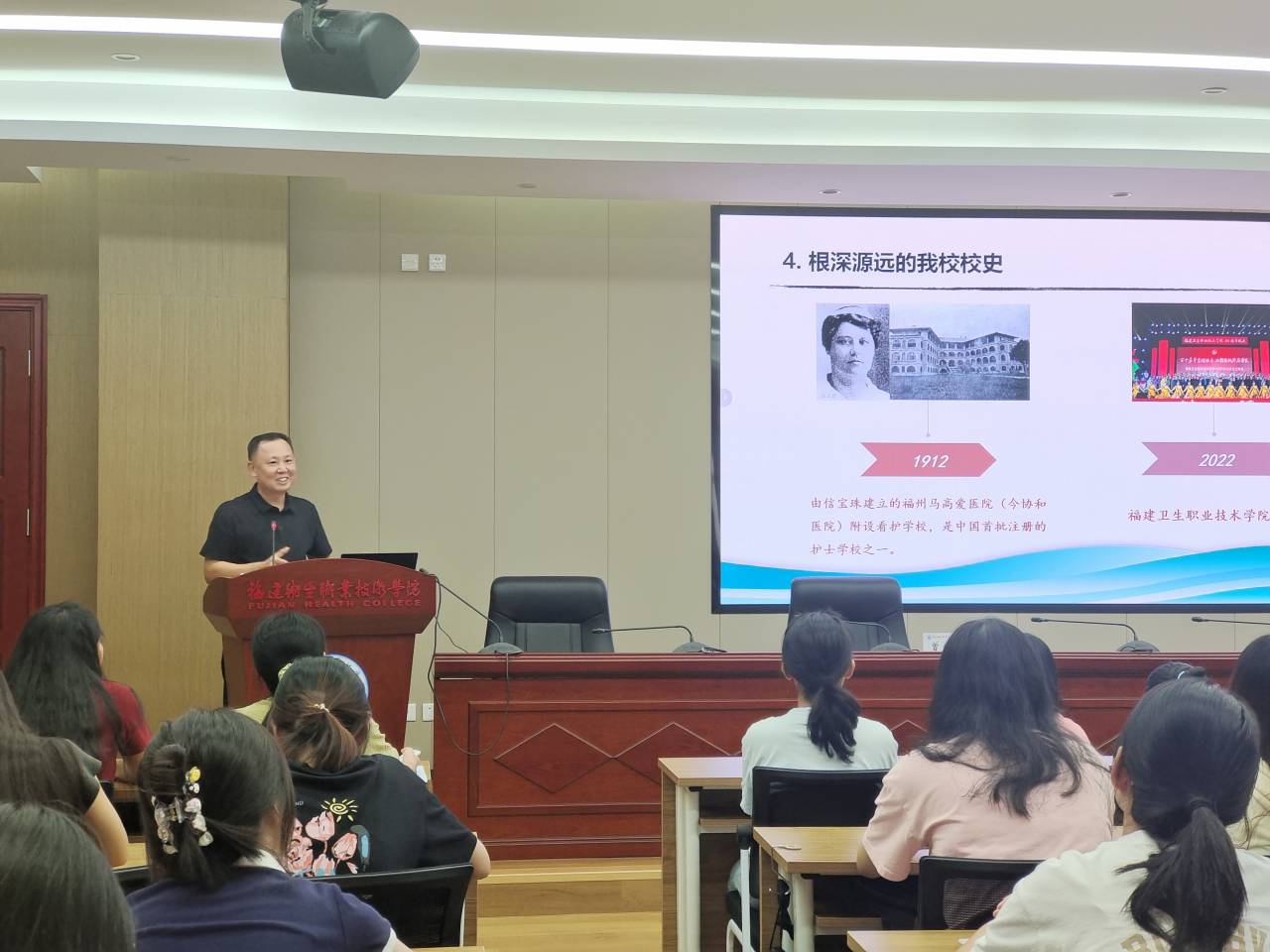 曾武祈以“賡續(xù)歷史文脈 勇?lián)鷷r代使命 共譜當(dāng)代華章”為題,鮮活地講述了一個個動人的中華文化故事。從有著“中國城市里坊制度活化石”和“中國明清建筑博物館”美稱的“三坊七巷”,到福建省第一座依托于史前遺址的博物館“曇石山遺址博物館”,再到著名的中國古代神話傳說“神農(nóng)辨藥嘗百草”等,在場師生在沉浸式的聽覺盛宴中掌握到了中華文明的五大突出特性,領(lǐng)悟了新時代堅持文化傳承的重要意義。曾武祈指出,只有深深植根于中華優(yōu)秀傳統(tǒng)文化的豐厚沃土,使歷史中國的深厚底蘊(yùn)與現(xiàn)實中國的嶄新氣象深相融通,才能有效推動中華民族優(yōu)秀傳統(tǒng)文化的創(chuàng)造性轉(zhuǎn)化、創(chuàng)新性發(fā)展;只有不斷追根溯源,從我校百年校史中汲取精神文化命脈,才能培育出文化底蘊(yùn)更深、精神內(nèi)核更穩(wěn)的新時代醫(yī)學(xué)生。他號召閩衛(wèi)院學(xué)子真學(xué)真知真懂真做,以高度的文化自覺、深沉的文化自信、勇毅的文化擔(dān)當(dāng)肩負(fù)起新時代新的文化使命。