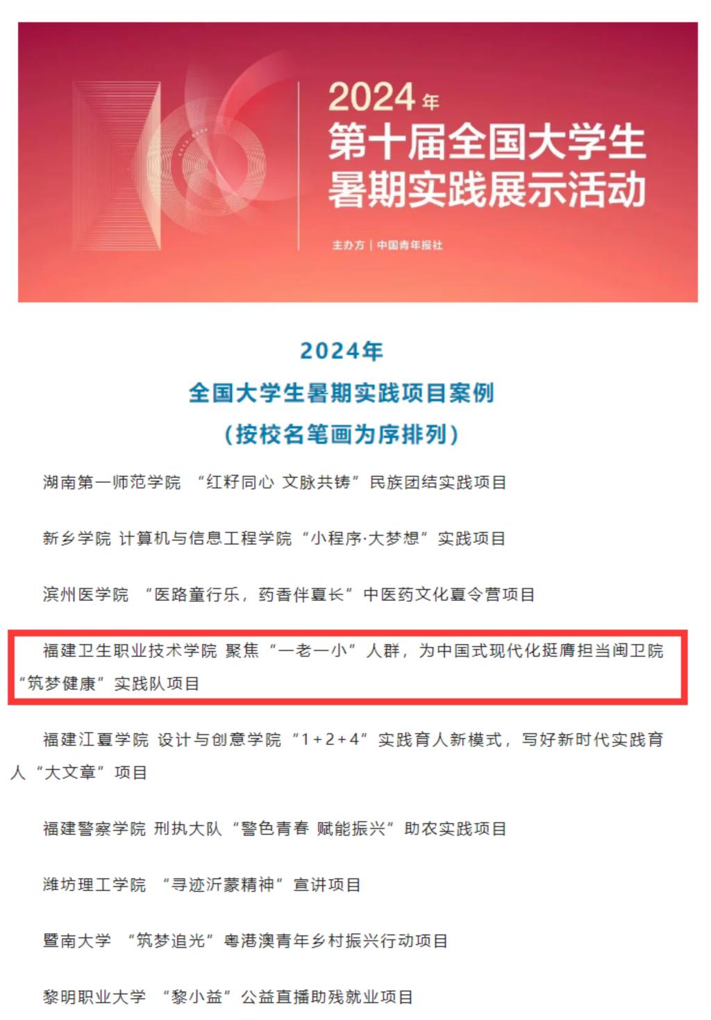 近日,由中國青年報社主辦的2024年第十屆全國大學生暑期實踐展示活動案例發(fā)布。公共衛(wèi)生與健康管理學院“筑夢健康”實踐隊項目——“聚焦‘一老一小’人群,為中國式現(xiàn)代化挺膺擔當”入選全國大學生暑期實踐項目案例。