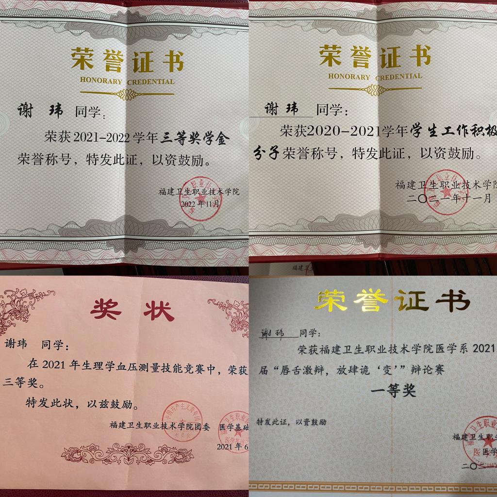 ?成為一名醫(yī)生,是謝瑋從小的夢想。帶著這份初心,她考入福建衛(wèi)生職業(yè)技術(shù)學院臨床醫(yī)學專業(yè),開啟了醫(yī)學追夢之路。在校期間,她始終牢記入學第一天所學的“技在高,更在德;術(shù)在巧,更在仁??吹氖遣。鹊氖切?;開的是藥,給的是情。”的醫(yī)者信條,用赤誠的學醫(yī)之心和奉獻精神在校園中不斷積累,刻苦學習專業(yè)知識,積極參與校園活動,擔任班級學習委員,服務同學,提升自我。她不僅在學業(yè)上表現(xiàn)優(yōu)異,還獲得了辯論賽一等獎、“學生工作積極分子”等榮譽,展現(xiàn)了全面發(fā)展的青春風采。