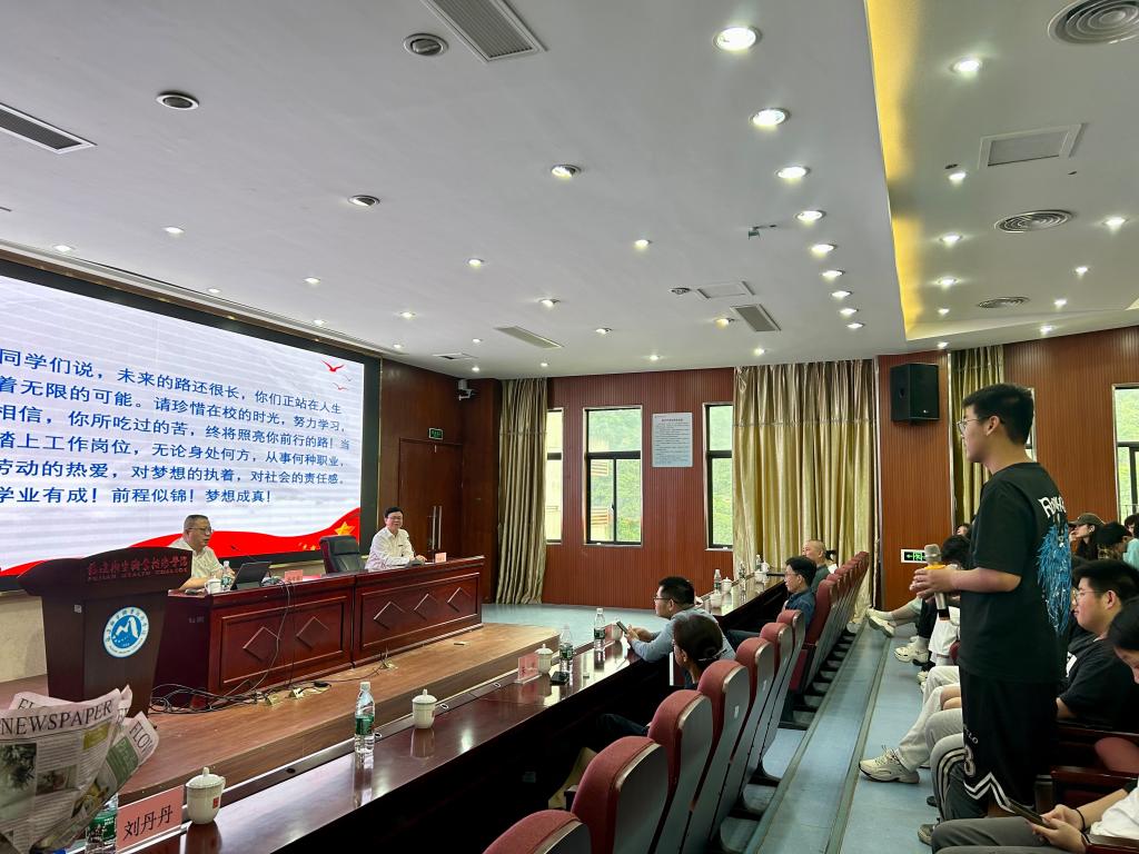 分享結(jié)束后,楊傳福與學(xué)生展開互動(dòng)問答,通過榜樣力量解答學(xué)生成長困惑。同學(xué)們提出“如何平衡生產(chǎn)效率與質(zhì)量管控”“青年學(xué)生如何快速適應(yīng)職場”“在一線生產(chǎn)的工作中是否有想過中途放棄”“學(xué)歷提升與盡早就業(yè)如何選擇”等問題,楊傳福結(jié)合自身從基層技術(shù)人員到管理骨干的成長經(jīng)歷,建議同學(xué)們夯實(shí)專業(yè)基礎(chǔ)、培養(yǎng)吃苦精神、強(qiáng)化責(zé)任意識,并特別指出企業(yè)對“工匠型人才”的迫切需求。分享結(jié)束后,我校工會副主席陳盛蘭為勞模獻(xiàn)花表示感謝。