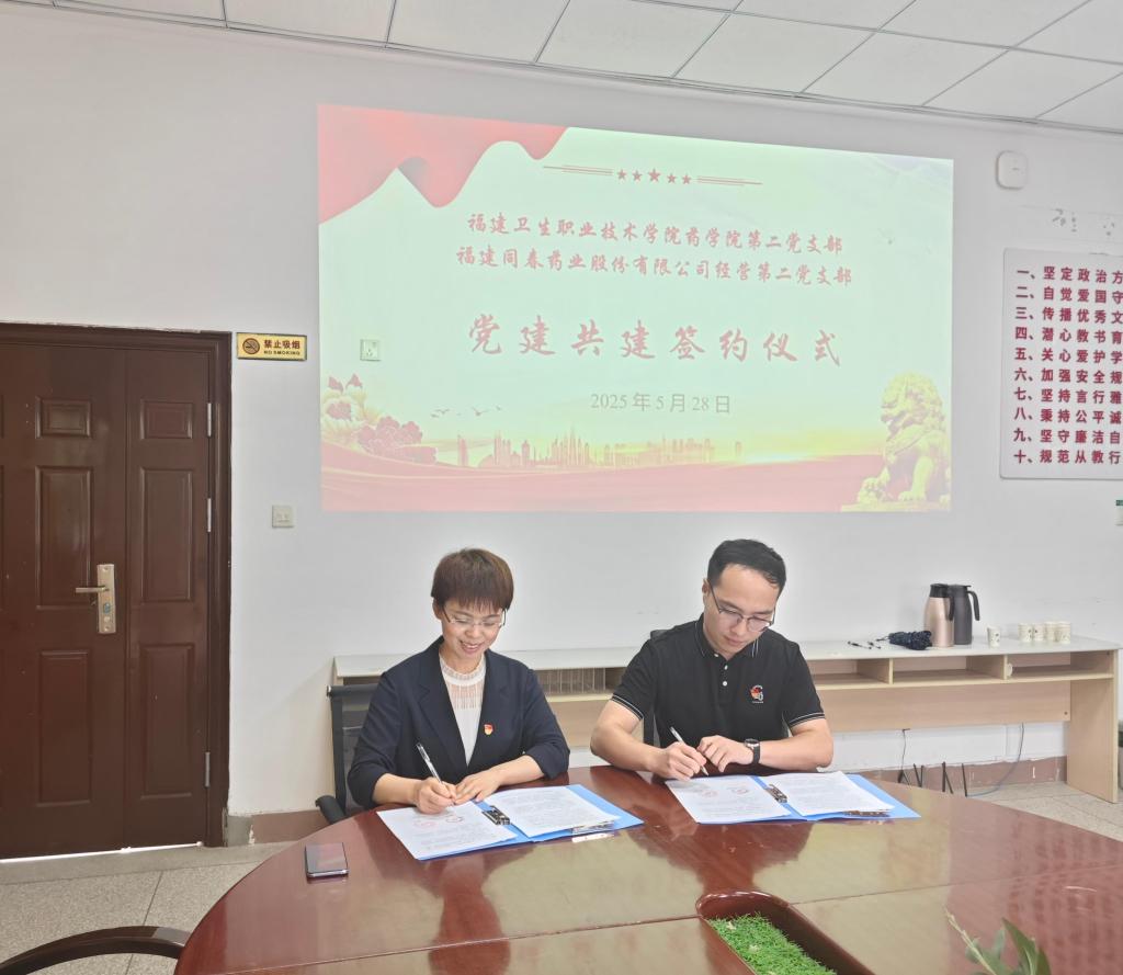 藥學(xué)院第二黨支部與福建同春藥業(yè)股份有限公司經(jīng)營第二黨支部舉行支部共建簽約儀式。雙方代表以座談會的形式分別介紹了各自黨支部基本情況,圍繞以黨建為紐帶、發(fā)揮各自優(yōu)勢、加強(qiáng)資源共享,就聚焦人才培養(yǎng)、實(shí)習(xí)就業(yè)等領(lǐng)域深化合作展開探討。