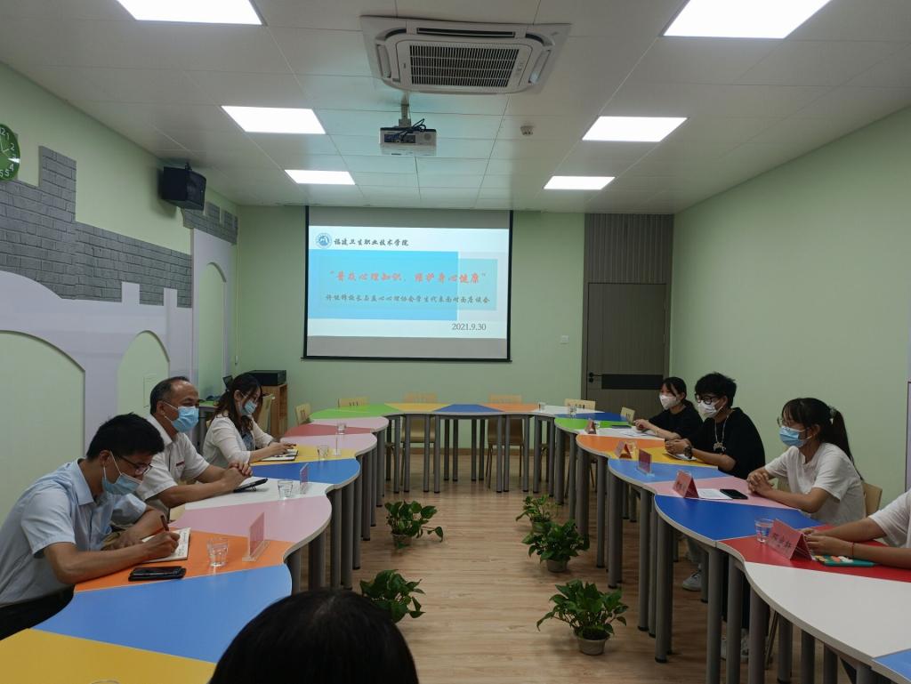 2021年9月30日下午,“普及心理知識(shí),維護(hù)身心健康”調(diào)研暨校長(zhǎng)許能鋒與益心心理協(xié)會(huì)學(xué)生代表面對(duì)面座談會(huì)在心理健康教育中心團(tuán)體輔導(dǎo)室舉辦,黨政辦公室秘書(shū)科科長(zhǎng)林來(lái)元和益心心理協(xié)會(huì)干事參加活動(dòng),活動(dòng)由心理健康教育中心副主任鄭梅欽主持。