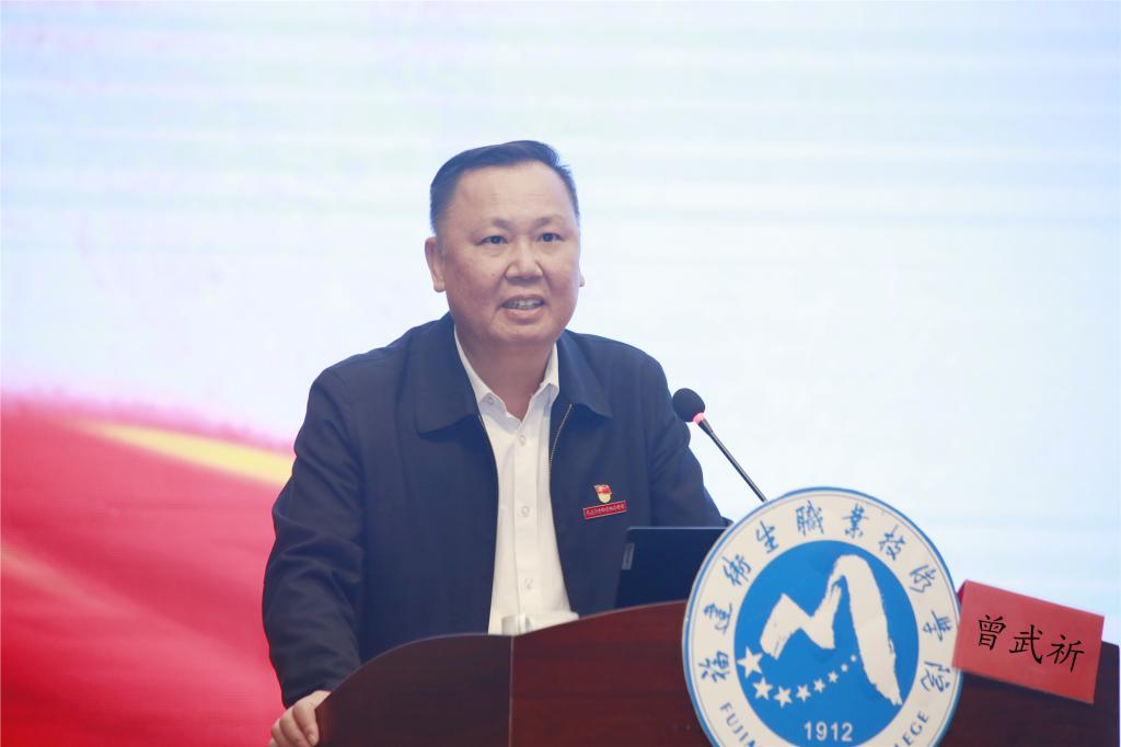 為弘揚(yáng)偉大抗疫精神,激發(fā)師生奮進(jìn)力量,讓黨旗在防控疫情斗爭(zhēng)第一線高高飄揚(yáng),2021年11月11日,我校隆重舉辦福建省首批援鄂醫(yī)療隊(duì)抗疫救援紀(jì)實(shí)報(bào)告會(huì)。報(bào)告會(huì)特邀福建省首批援鄂醫(yī)療隊(duì)領(lǐng)隊(duì)(總聯(lián)絡(luò)員)、福建省首批援鄂醫(yī)療隊(duì)臨時(shí)黨委書記、福建省衛(wèi)健委人事處一級(jí)調(diào)研員寧永鑫作專題報(bào)告。報(bào)告會(huì)由校黨委書記曾武祈主持,校領(lǐng)導(dǎo)、中層干部、學(xué)生代表等400余人參會(huì)。