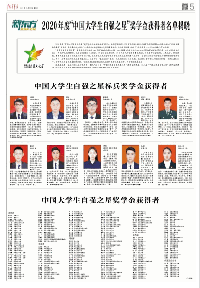 為尋訪青年榜樣,為當代大學生樹立一批可親可敬可信可學的榜樣。由共青團中央、全國學聯(lián)指導,中國青年報社和新東方教育科技集團聯(lián)合開展2020年度“中國大學生自強之星”獎學金推報活動。經(jīng)學校推薦、省級初評和全國評審等環(huán)節(jié),我校王林慧同學從眾多評選對象中脫穎而出,榮獲2020年度“中國大學生自強之星”獎學金。
