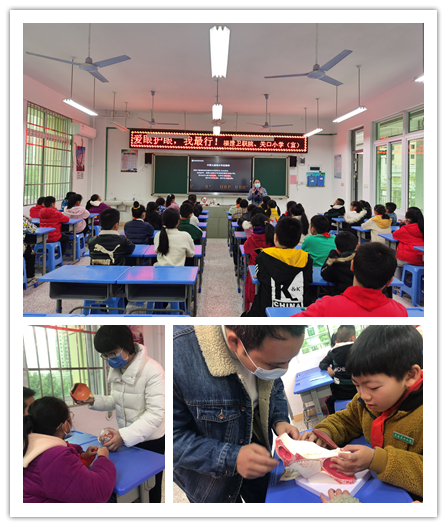 活動(dòng)中,王珊珊老師用淺顯易懂的語(yǔ)言向關(guān)口小學(xué)師生介紹了“一增一減一尺一拳一寸”五個(gè)一口訣,讓學(xué)生在學(xué)習(xí)和日常生活中學(xué)會(huì)科學(xué)用眼,預(yù)防近視。