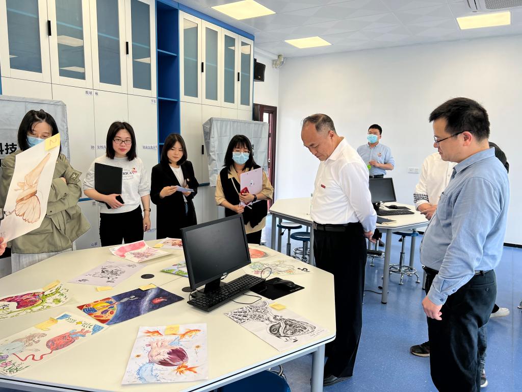 許能鋒仔細查看了每一幅繪畫作品,表示大部分作品很好地呈現(xiàn)出了解剖結構,讓人仿佛置身于解剖課堂中。他強調,作為解剖繪畫作品,最重要的是體現(xiàn)科學性、突出“真”,教師要通過課堂、通過比賽向學生傳遞,無論是在學習解剖學等醫(yī)學基礎課程還是在未來的崗位上,都必須牢記求真務實、腳踏實地。