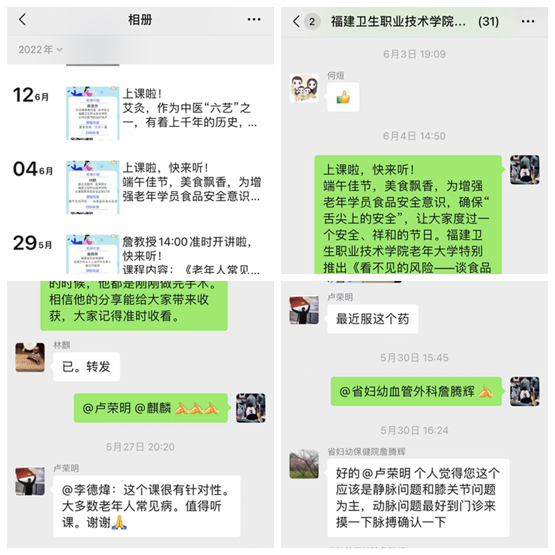 本次線上科普活動效果良好,獲得了老年學(xué)員們的一致好評。我校老年大學(xué)將以此為契機(jī),積極引進(jìn)優(yōu)秀師資,提高師資隊(duì)伍水平,開設(shè)更多滿足老年朋友們學(xué)習(xí)、生活等需要的課程,讓老年人共享改革發(fā)展成果、安享幸福晚年,推動老齡事業(yè)高質(zhì)量發(fā)展。
