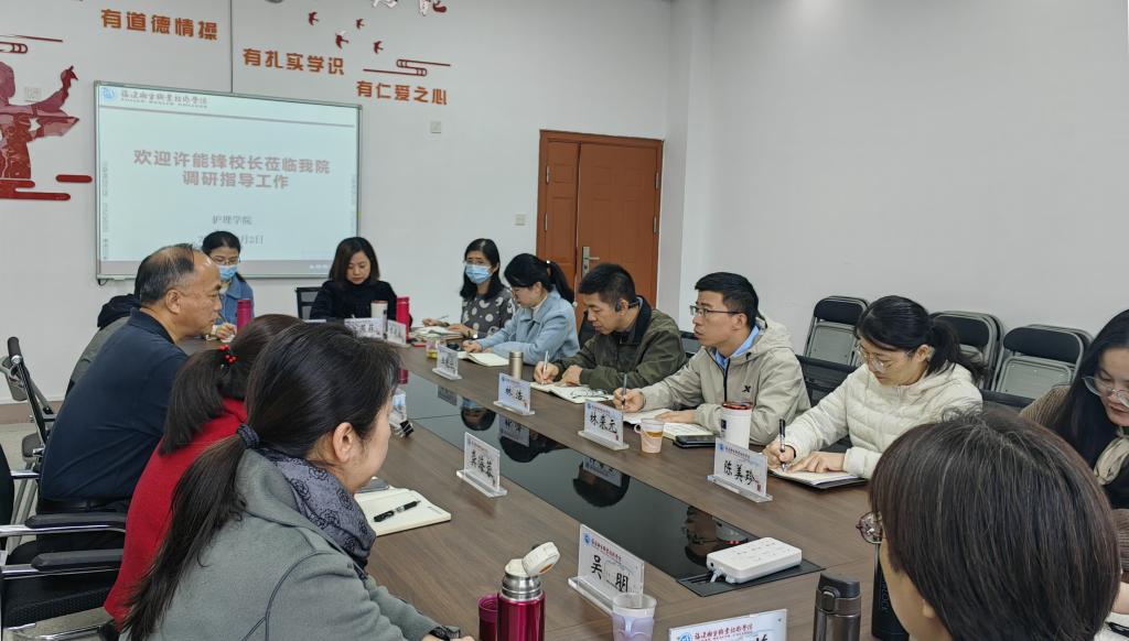 12月2日上午,校長許能鋒到護(hù)理學(xué)院調(diào)研指導(dǎo)工作。黨政辦公室主任、護(hù)理學(xué)院黨政班子成員、各教研室主任參加座談會(huì)。