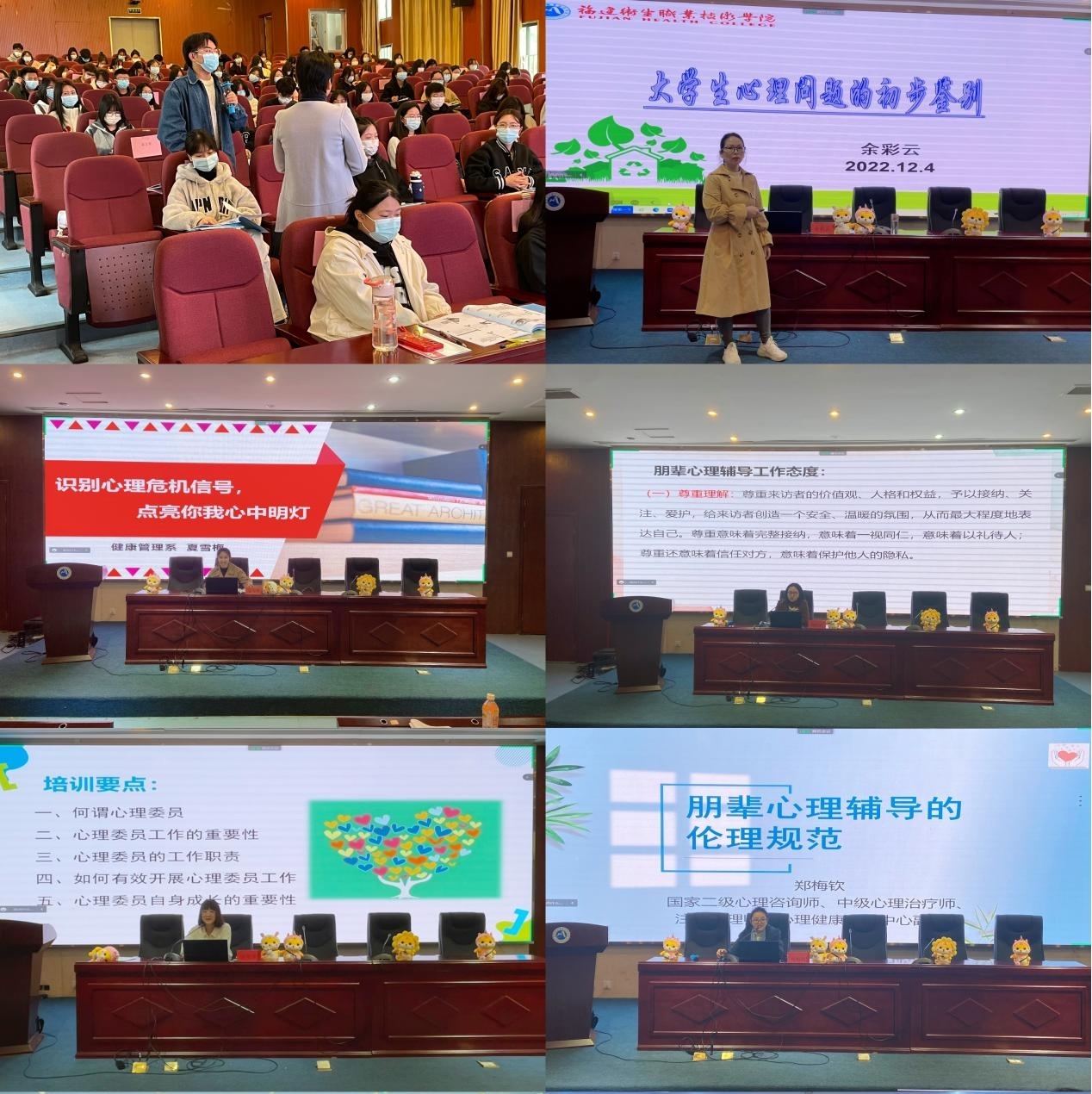 為提升學(xué)生心理朋輩隊(duì)伍對(duì)心理健康教育工作重要性的認(rèn)識(shí),熟悉心理委員、心理朋輩的工作職責(zé),提升大家的心理專業(yè)技能,12月4日,我校舉行2022年心理委員、心理朋輩技能培訓(xùn),鄭梅欽、余彩云、黃秋蓮、田偉翠、夏雪梅和鄭曉婧六名心理健康老師帶來六場(chǎng)豐富精彩的主題培訓(xùn),并在培訓(xùn)結(jié)束后進(jìn)行結(jié)業(yè)考核,幫助同學(xué)們鞏固所學(xué)知識(shí)。