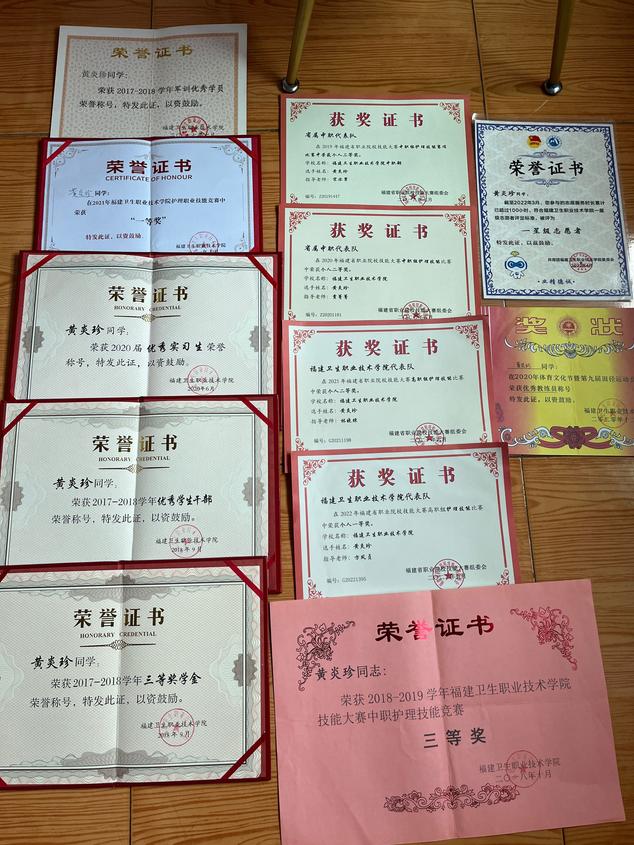 吳鋒老師:黃炎珍同學為人誠懇,謙虛,樸實無華,思想積極上進,身處逆境,卻永不退縮。從中職入學的青澀小姑娘變成了現(xiàn)在成熟干練的省賽一等獎獲得者,一路成長,離不開她敢想、敢為、敢說、敢問的求知精神,相信她憑借著自身的努力奮斗與拼搏,會成為一名優(yōu)秀的新一代護理人。